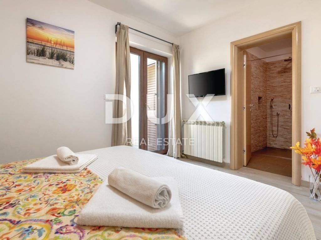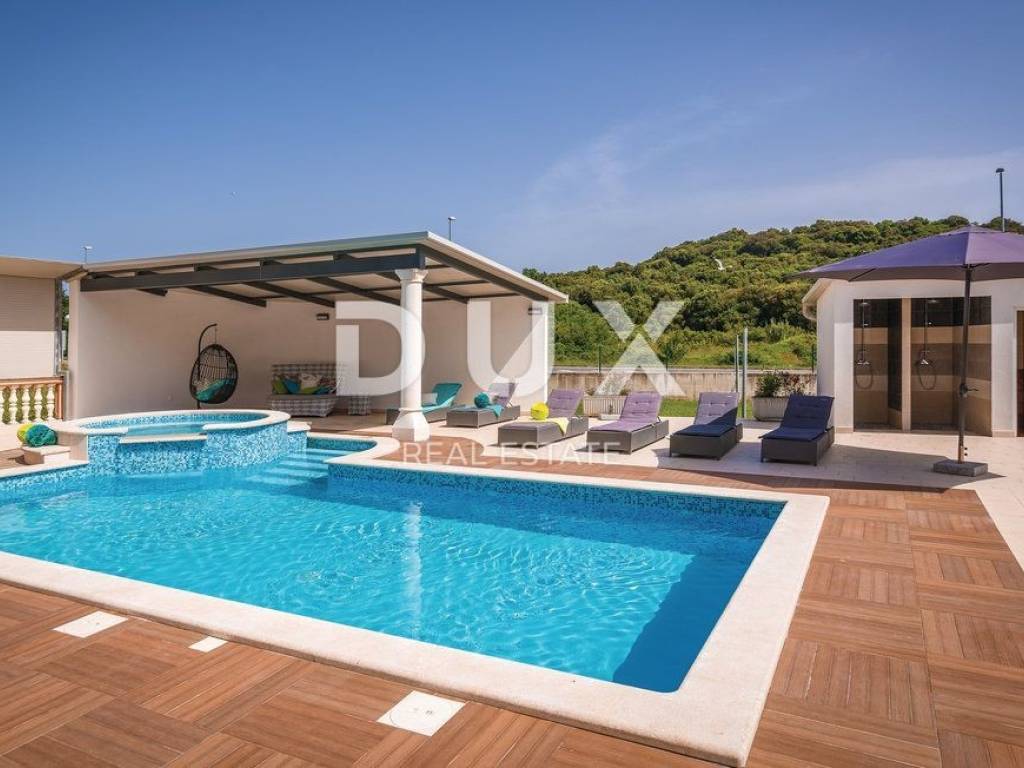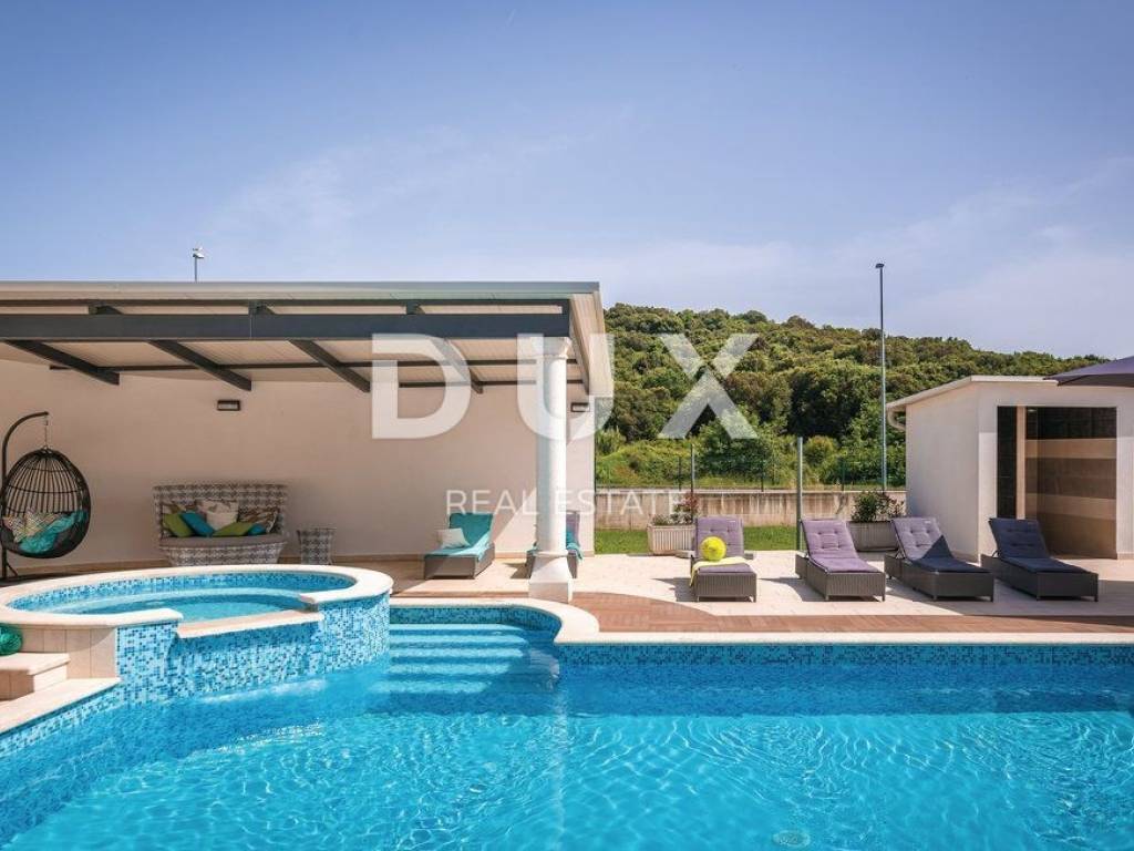 We offer a luxuriously decorated holiday home located in Nova Veruda. On the ground floor there are two bedrooms, each with its own bathroom, television and air conditioning, also, on the ground floor there is a large social hall with fitness / gym, jacuzzi, sauna, showers, toilet, laundry, machine and dryer, billiard room, table tennis and table football which opens onto a large terrace with a swimming pool, ski jumps, barbecue, slide, seesaws, deck chairs and umbrellas, and a volleyball court. On the first floor there are 5 rooms, each with its own bathroom, television and air conditioning. On the second floor there is an apartment with a large living room, kitchen and two bedrooms, bathroom and terrace. In the attic there are 2 rooms, one with access to the balcony and the other with private bathroom. The house has a bio septic tank, central heating on city gas, new air conditioning, aluminum blinds on remote control, pvc carpentry - imitation wood, boiler room, 3 pantries, tavern. Also, the house has its own water well, irrigation, video surveillance, alarm, safe and 6 garage spaces.