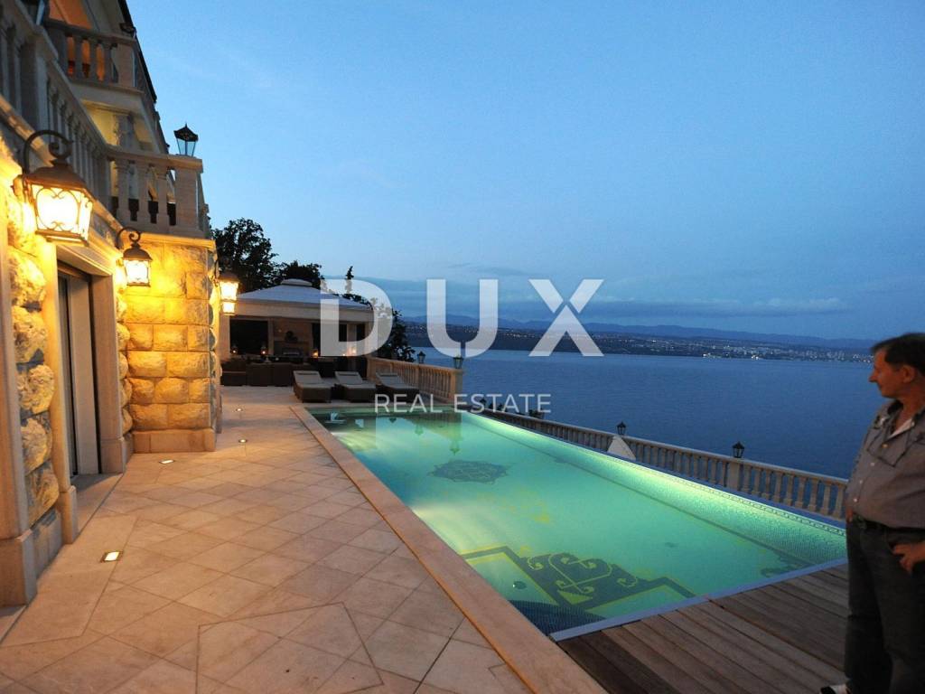 OPATIJA - villa with pool 1st row to the sea. This unique property on the market consists of: 4 living rooms, 4 kitchens, 11 bedrooms, 10 bathrooms, 3 toilets, 1 storage room, 1 fitness gym, 1 swimming pool, 1 basement, 1 boiler room, 1 elevator, 8 parking spaces, all installed materials, floor and wall coverings are of the highest standards. . The villa is equipped with: -top heating-cooling system, -alarm system, -armored doors and windows, -remote control of blinds -Swarovski wall and ceiling chandeliers The villa has a total of 4 floors that are connected with an internal staircase and an internal elevator. The villa has a swimming pool, an outdoor summer house with a kitchen, and a mini bar. The plot has a total size of 1090m2. Opatija: Opatija, a beautiful coastal town located on the Adriatic Sea, is a famous tourist destination for tourists from all over the world. The city is surrounded by beautiful nature, at the foot of the Učka mountain. Real estate in Opatija offers a priceless view of the sea and the surrounding islands of Krk and Cres. Opatija is surrounded by charming small towns with old houses located in narrow streets rich in history. The streets of the city of Opatija are made up of properties that stand out with their specific architecture and villas that date from the Habsburg period. A large selection of beaches, crystal clear sea and various tourist services are the key factors that make Opatija a perfect tourist destination recognized by neighboring countries as an excellent investment choice. Real estate prices in this area are rising, rental occupancy is excellent, which has resulted in a return on investment of 5% to 10% and attracting foreign investors. PROPERTY IN A GREAT AND UNIQUE LOCATION!!! Dear clients, the agency commission is charged in accordance with the General Business Conditions www.dux-nekretnine.hr/opci-uvjeti-poslovanja