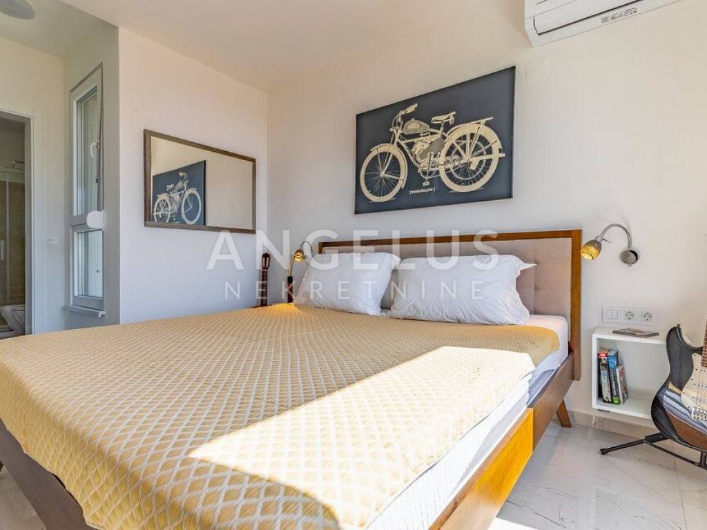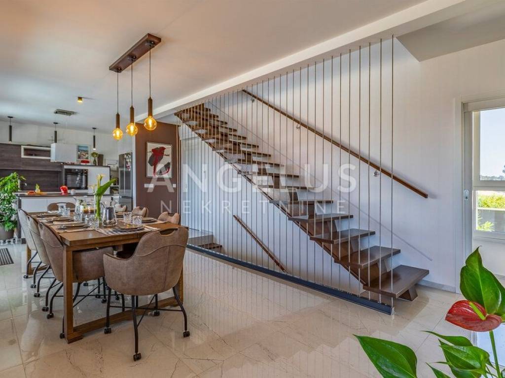 This villa in Medulin stands out with its elegant and contemporary design, with a carefully thought-out layout of rooms that provide maximum functionality and aesthetics. Large windows allow for plenty of natural light and create a feeling of openness, while at the same time providing a panoramic view of the blue sea, peaceful nature and picturesque sunset landscapes.