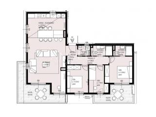 An apartment with a total net area of 106.54 m2 is for sale, located on the third floor of a beautiful urban building with a view of the sea, which has a total of 22 apartments. The apartment consists of an entrance hall, a kitchen and a dining room with a living room, an entrance hall, three bedrooms, two bathrooms, a toilet and a terrace with a beautiful view of the sea and nearby islands. The construction is carried out according to the latest standards, which include quality materials and turnkey equipment, which includes: first-class hydro and thermal insulation, anti-burglary and fire doors in a modern design, high-quality interior carpentry, elegant tiles and wooden floors, built-in underfloor heating in the bathrooms. The apartment also has two parking spaces. The expected completion date of the building is September 2024.