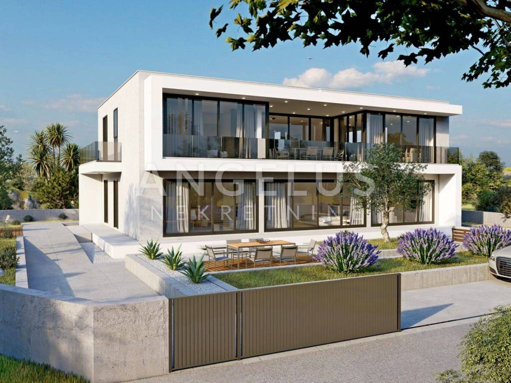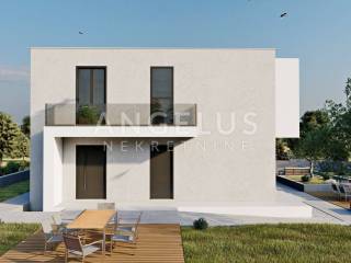 Na prodaju je građevno zemljište s planiranom samostojećom obiteljskom kućom ravnog krova koja se sastoji od dvije stambene jedinice. Prizemlje kuće nudi zajednički ulaz kroz natkriveni prostor koji vodi do prostranog ulaznog prostora i zajedničke ostave. Stan 1 se nalazi u prizemlju i dizajniran je za udoban obiteljski život. Prostrana kuhinja s blagovaonicom idealna je za obiteljske obroke, dok dvije moderne kupaonice i hodnik vode do tri prostrane spavaće sobe, od kojih jedna ima vlastitu garderobu. Dnevni boravak izlazi na natkrivenu terasu, savršenu za opuštanje na svježem zraku.