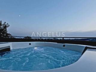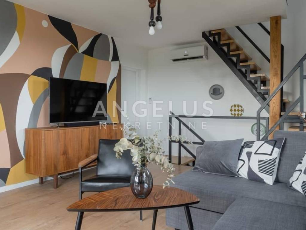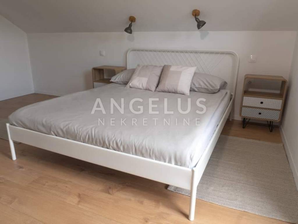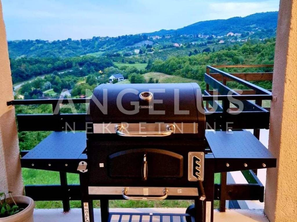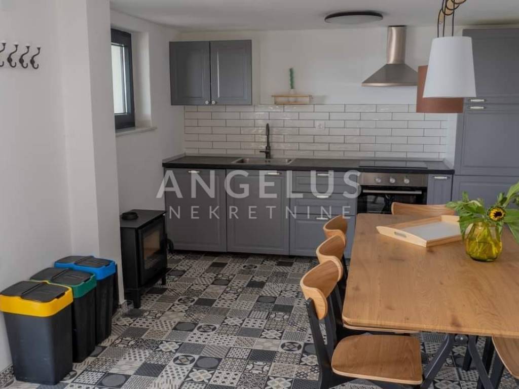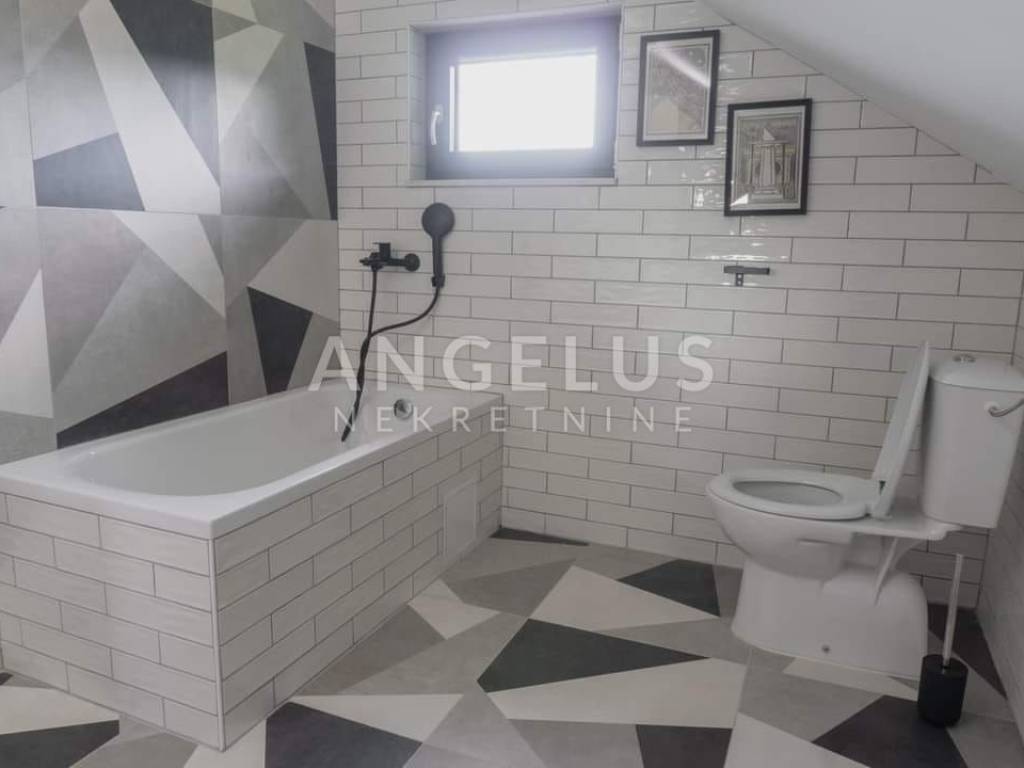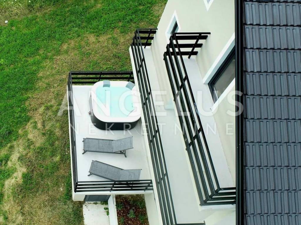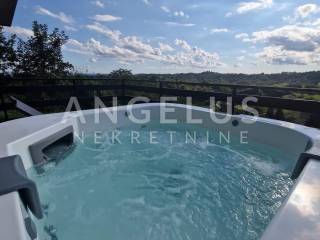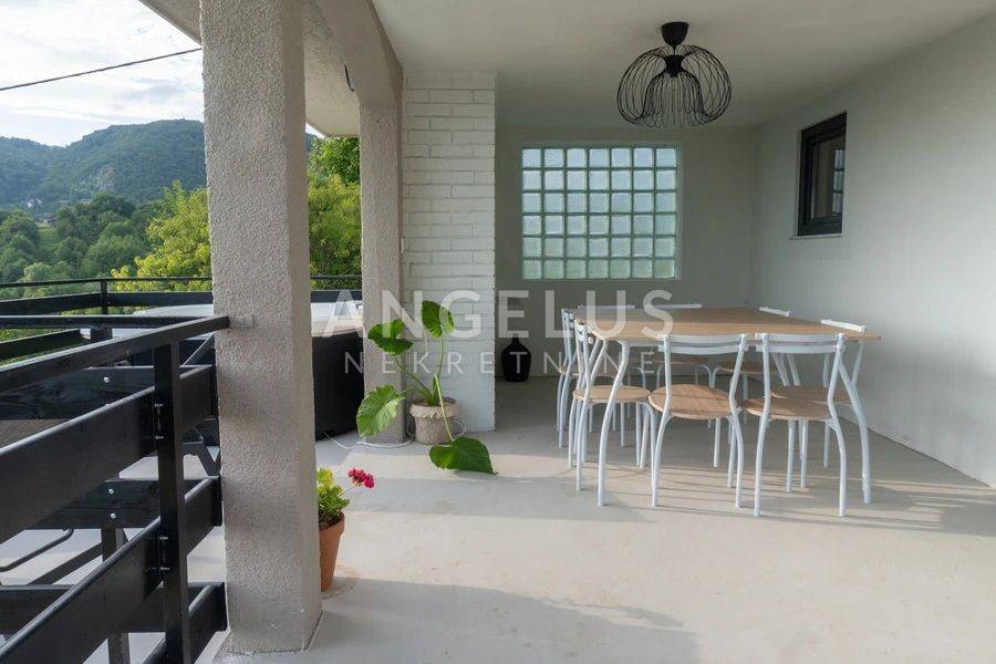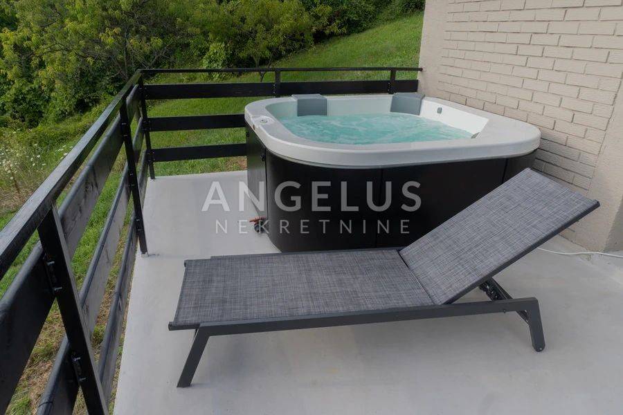 DESCRIPTION: A very tastefully and modernly renovated house of 159 m2 distributed on the exterior and interior surfaces and on three floors is located in a completely green environment. The house consists of a basement with a terrace and a ground floor with an open space kitchen and dining room, an internal loggia and an external terrace with a jacuzzi. Internal wooden stairs lead to the first floor, which consists of a living room with access to the loggia, one bedroom and a large bathroom, while on the second floor, in the high attic, there are 2 bedrooms with access to the balcony as well as another large bathroom. Kima devices and a wood-burning stove are installed in the house. Very tastefully and innovatively decorated interior.