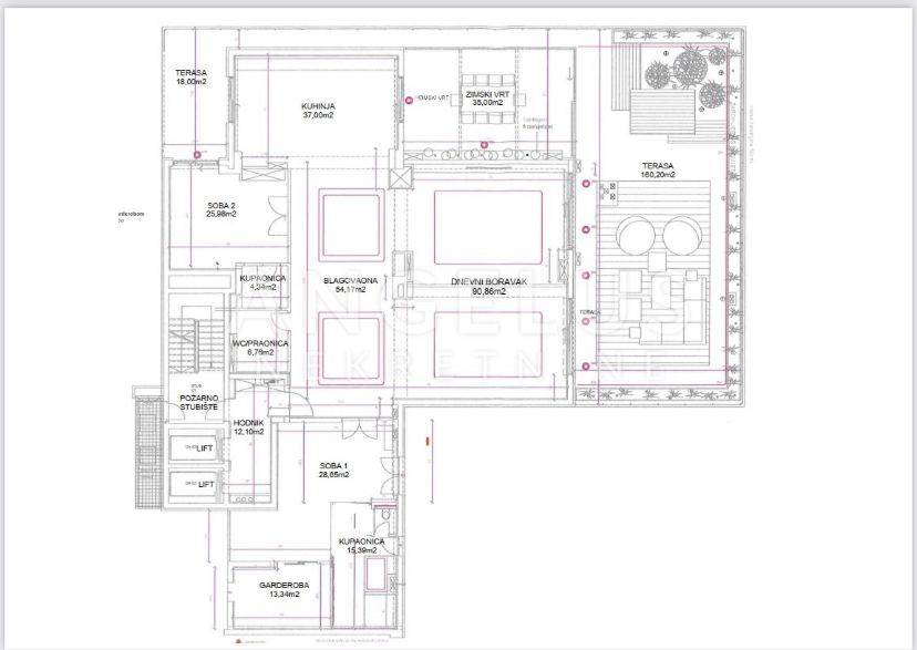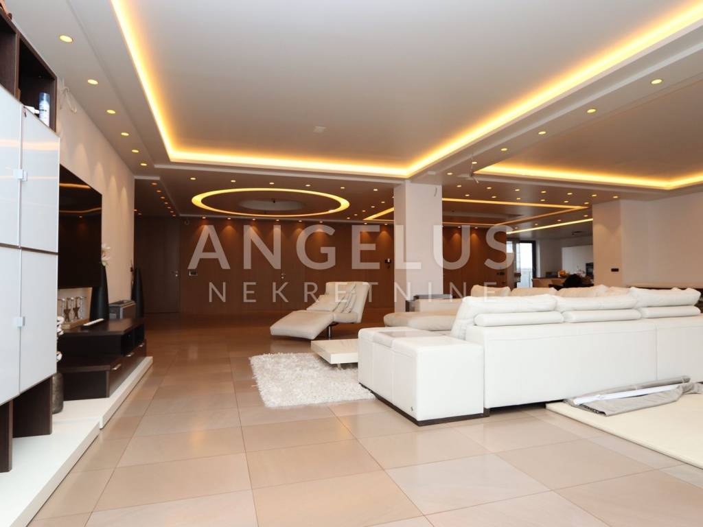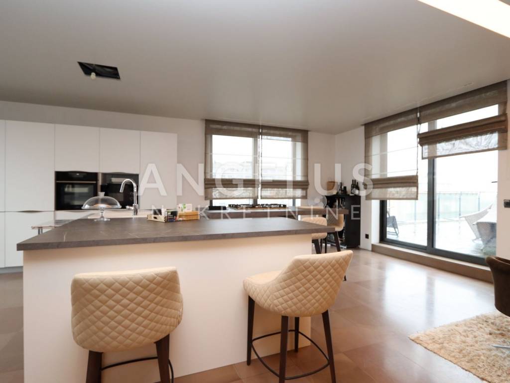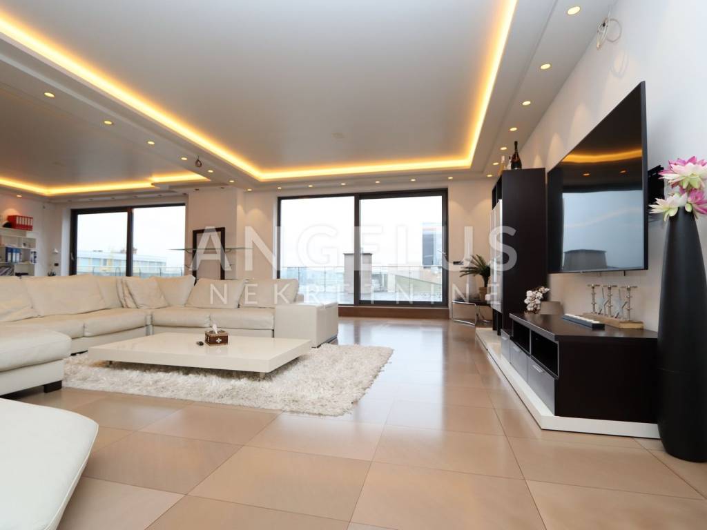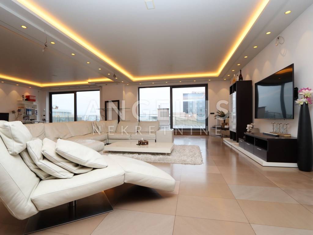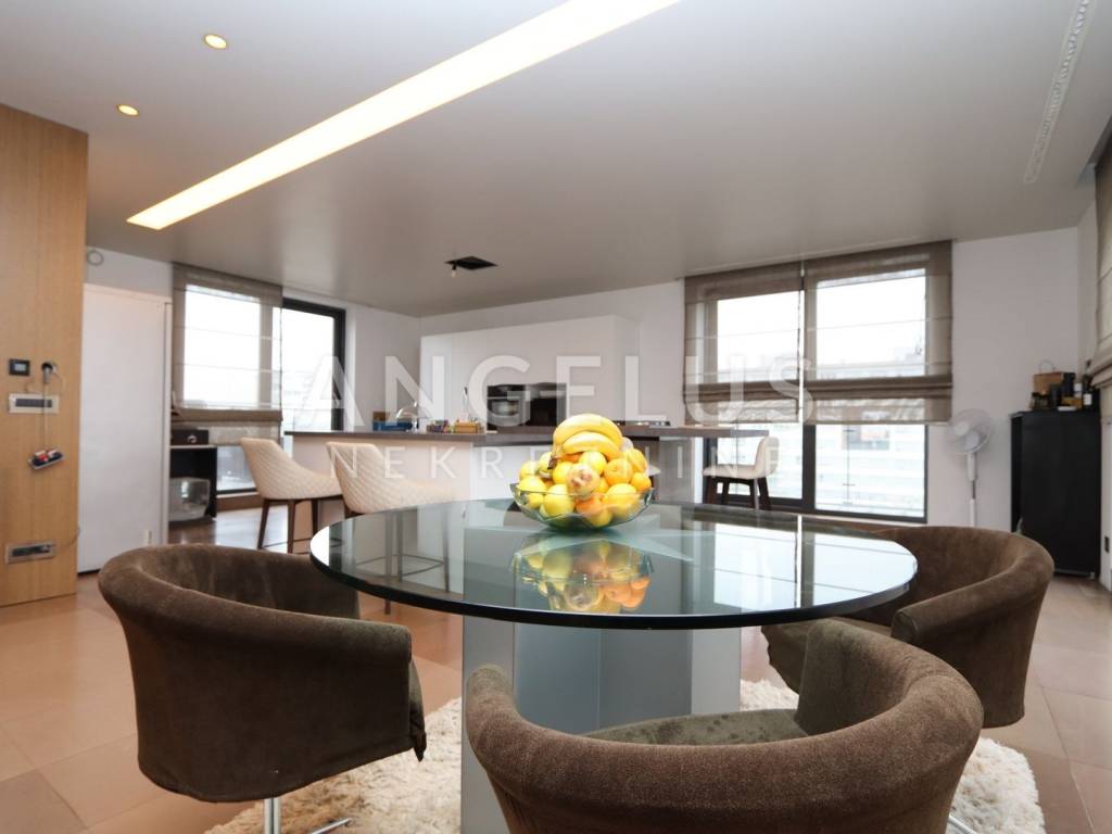 DESCRIPTION - Modern luxury penthouse consists of a spacious living room (90 m2), dining room (54 m2) with access to the terrace and winter garden, kitchen, master bedroom with bathroom and walk-in wardrobe, smaller bedroom with bathroom, hallway and laundry rooms with toilet. . The elevator from the apartment leads directly to the garage (3 parking spaces).
