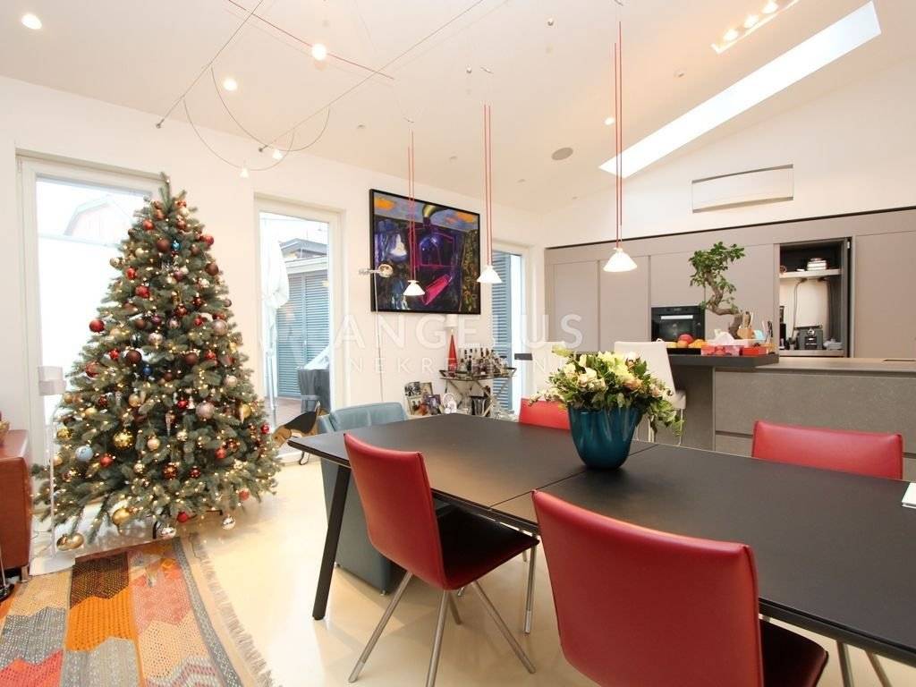 On the ground floor is the main entrance with fitted wardrobes, guest toilet, open kitchen (Miele appliances, Bora Domino induction hobs, gas stoves and Teppan Yaki) connected to the living room and dining room and exit to two terraces and a garden.