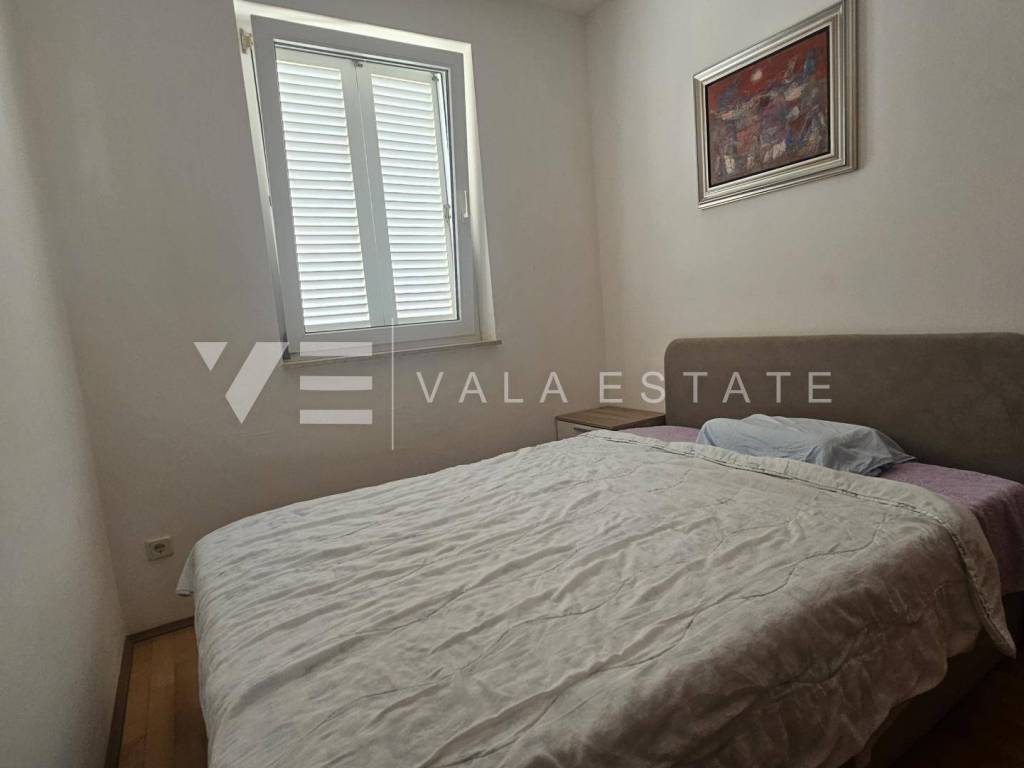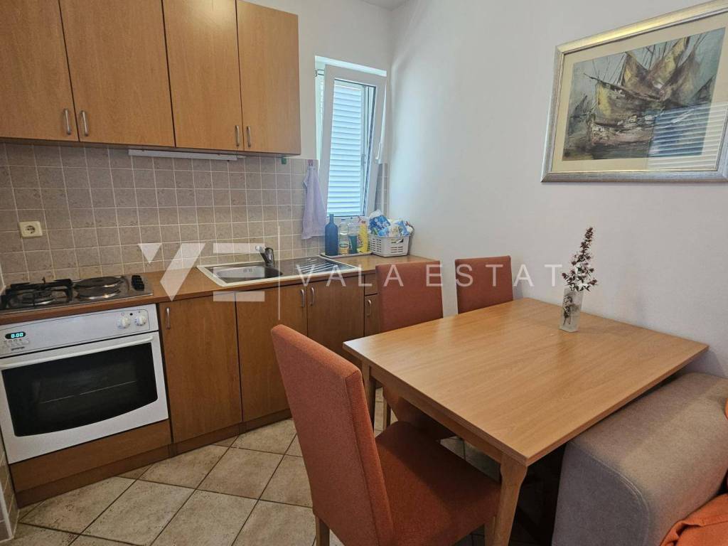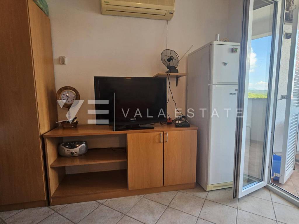 Real estate island Krk, Punat - for sale is a one-bedroom apartment in a very attractive location near beautiful beaches. The apartment with a total living area of 33 m2 is located on the first floor of a multi-family house and consists of an entrance hall, kitchen with dining area, living room with access to a loggia with a sea view, bedroom and bathroom. It is being sold fully furnished, air-conditioned, has PVC exterior carpentry and is ready to move in. It comes with one parking space in the yard. It is located in a quiet location only 500 m from the sea and beautiful beaches and near the center with all necessary amenities. It is an excellent opportunity for own use or for tourist rental.