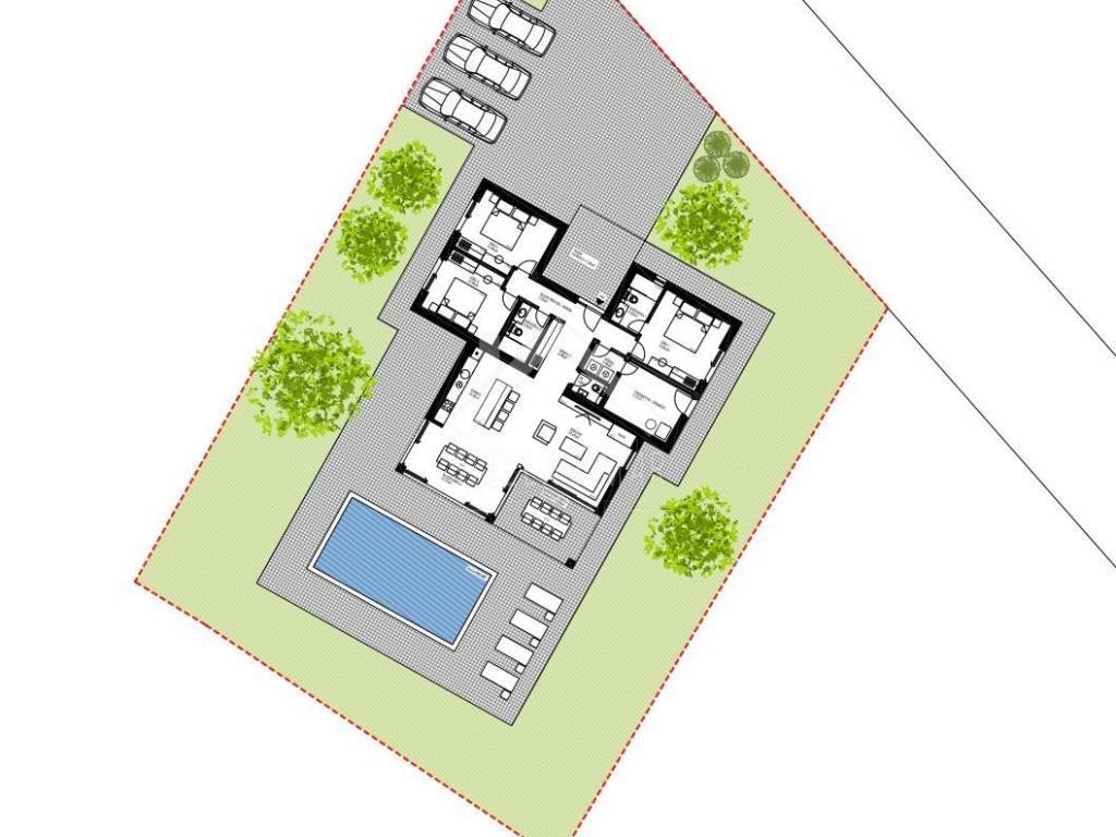 Zemljište je površine 930m2 i ishođena je dozvola za prizemnicu sa bazenom.