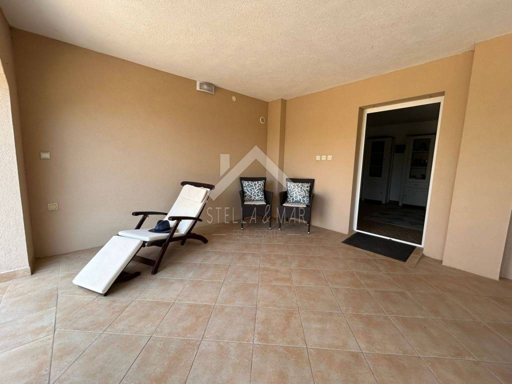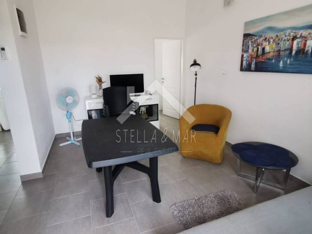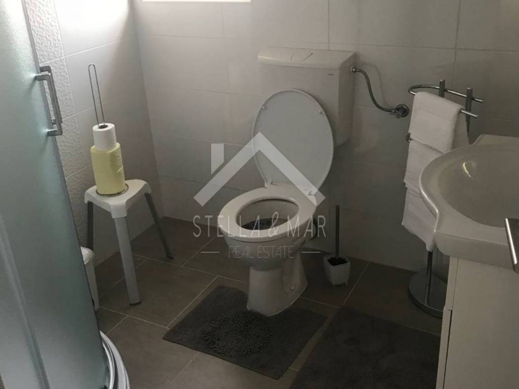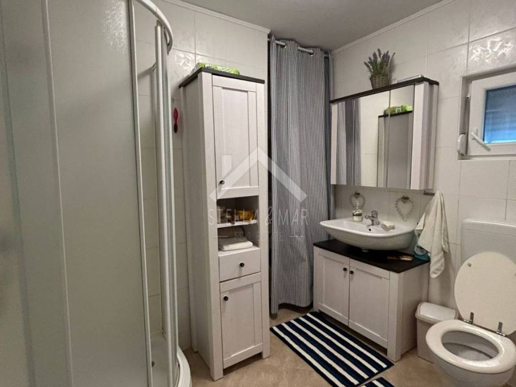 External stairs lead to the first floor of the house where there are two apartments. The two-room apartment has a living room, kitchen, two bedrooms and a bathroom. The second apartment is a studio that has a living room with a kitchen and a bathroom. There is also a spacious terrace on the first floor.
