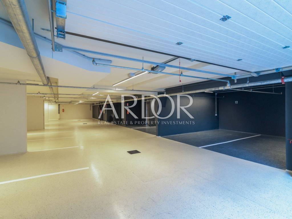 Heating and cooling are provided by underfloor heating with a heat pump and air conditioning in each room. Each apartment is equipped with a smart home system, security entrance doors, larch woodwork, and a security and fire protection system throughout the building.