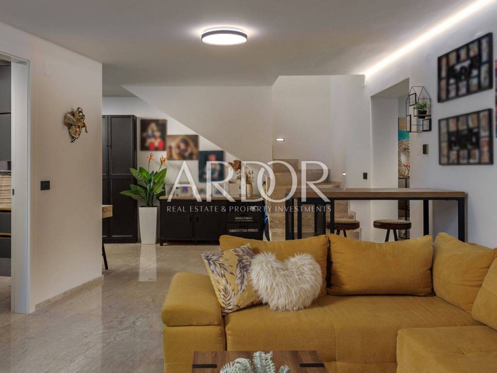 For sale: a luxurious duplex apartment with a total area of 294 m, consisting of a high-ground-floor unit in a new building and auxiliary rooms in the basement. The property also includes a 299 m garden with a landscaped yard, a spacious terrace, and parking.