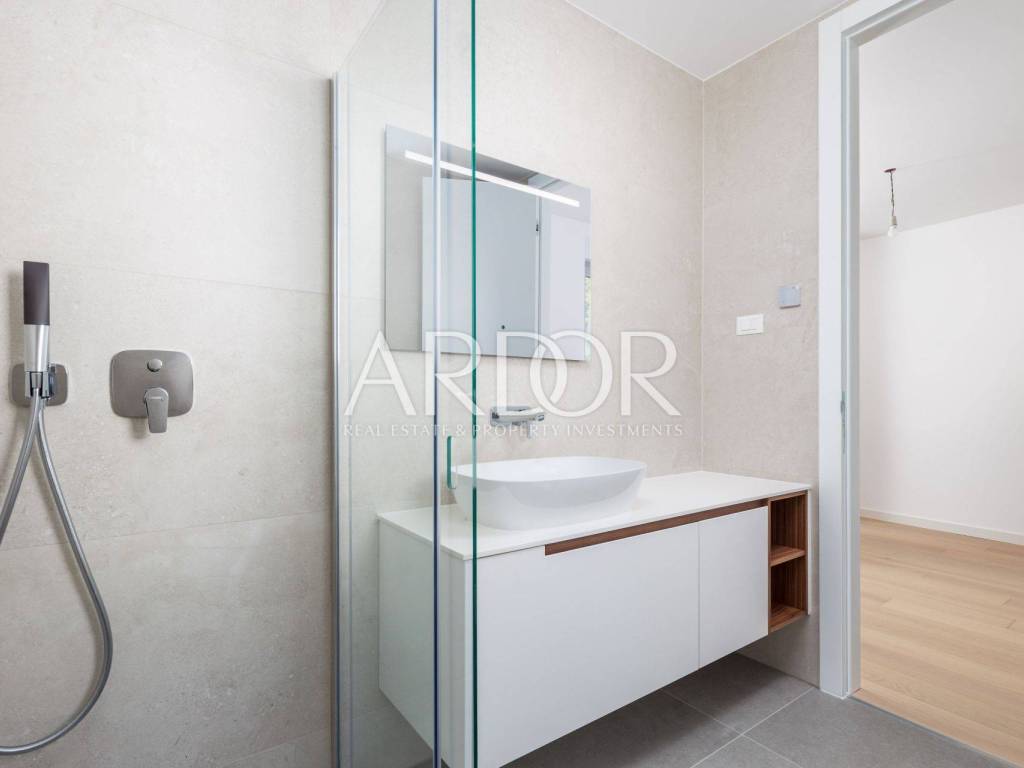 This luxurious apartment, located on the first floor of a new building, offers spectacular views of the sea and the historic core of Opatija. With a balcony and a shared pool, the property offers a premium lifestyle, perfectly blending comfort and elegance.