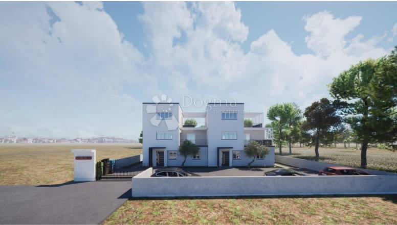 In a quiet part of Vrsi, just 300 meters from the sea, a new apartment of the highest standard is for sale. The project includes four luxurious residential units that combine contemporary architecture, privacy and the comfort of Mediterranean life. The ground floor apartment has three bedrooms, a spacious living room with kitchen and dining area and two bathrooms. Large glass walls open onto a private garden with a heated pool, creating a pleasant transition between the interior and exterior. The building was built according to the A+ energy standard, with ALU joinery, triple-layer IZO glass and a heat pump. The location offers peace, proximity to the sea and easy access to Zadar, which makes this property ideal for family life, tourist investment or a luxurious holiday in Dalmatia.