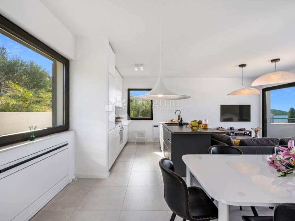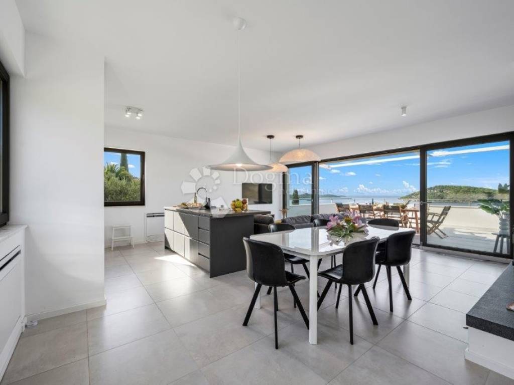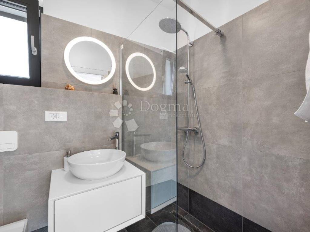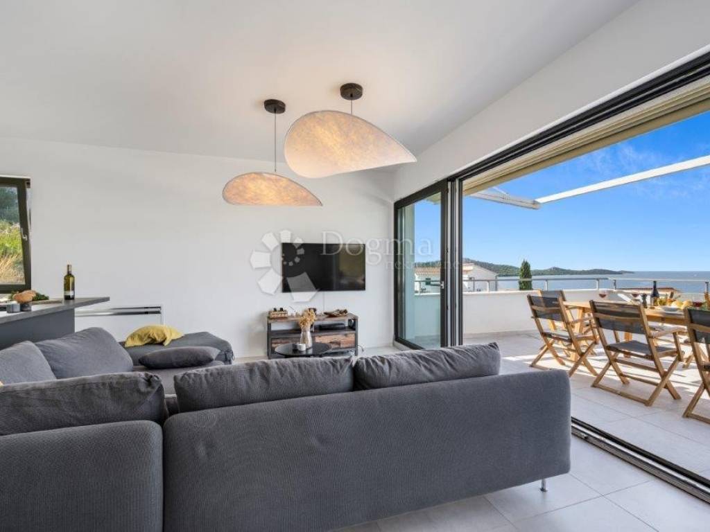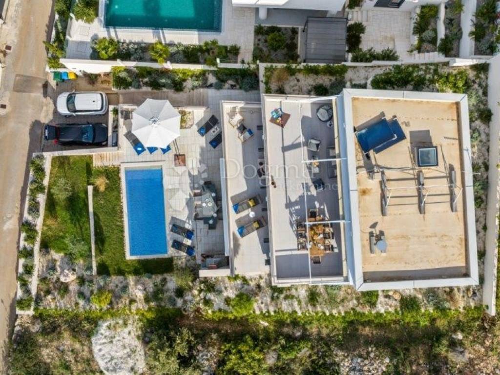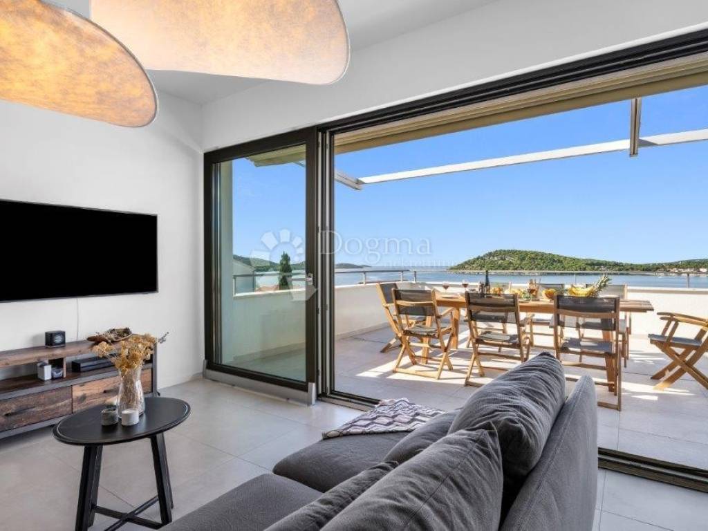 For sale is a luxurious, modernly decorated villa located in the immediate vicinity of Rogoznica, only 110m from the sea. The property extends over three floors, with a total living area of approximately 186 m, and with its layout, quality equipment and attractive location, it provides superior comfort and an ideal combination of Mediterranean lifestyle and modern comfort. The villa is suitable for family life, vacation or as an excellent investment for tourist rental. The ground floor includes a spacious entrance area that leads to a modernly equipped sauna with shower, a fully equipped kitchen with dining area and access to a stone-paved terrace. The outdoor area features a private swimming pool with shower, a landscaped garden and a built-in barbecue, creating the perfect place to enjoy the outdoors. There is also an additional storage room on this floor. The first floor consists of three comfortable bedrooms. The master bedroom has its own bathroom, while the other two share an additional bathroom. All rooms have access to a spacious terrace with a beautiful view of the sea and the surrounding area. The second floor offers an elegantly decorated kitchen with an island, a dining room and a bright living room with large glass walls that provide plenty of natural light. The living room opens onto a spacious terrace with panoramic views of the sea, nearby islands and Rogoznica. There is also an additional bedroom with its own terrace and another bathroom on this floor. The villa is west-facing, which allows for beautiful sunsets and sunlight throughout the day. It is equipped with a water-based underfloor heating system and air conditioning in all rooms, and only high-quality materials and carefully selected furniture have been used. This property represents the perfect combination of luxury, functionality and a unique location - an ideal opportunity for anyone looking for an exclusive home by the sea.