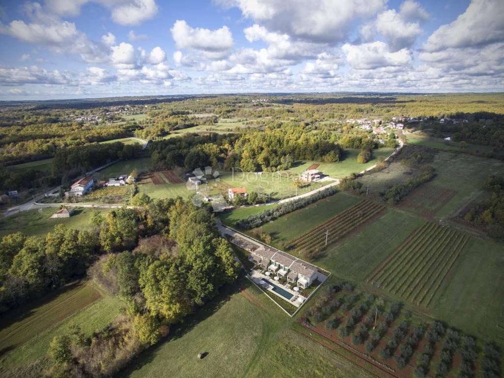 In a peaceful location surrounded by greenery in the Barbana area, away from the bustle of the city, a modern terraced house with a total living area of 105 m and a spacious private garden of 110 m is for sale. Situated within a small complex of six residential units, this property offers the perfect balance of privacy and shared amenities. On a plot of 3,000 m, future owners will enjoy a landscaped environment and a large communal swimming pool of 150 m.