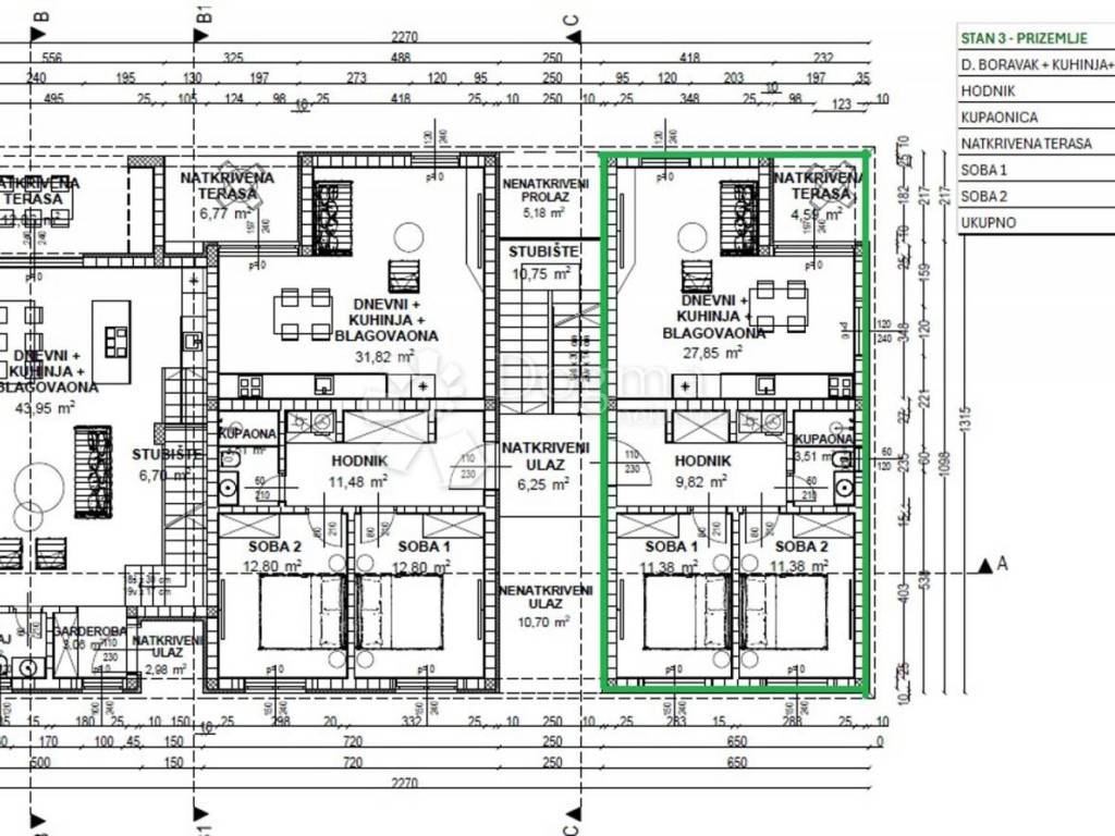 POREČ - Ground floor apartment with garden An apartment for sale in a new building in Poreč, a few minutes' drive from the center. The apartment is located on the ground floor and its area is 66 m2 plus 140 m2 of garden. The building has only 5 residential units. The apartment has an entrance hall, two bedrooms, bathroom, living room, kitchen and dining room in one open space with access to a covered terrace and garden. Underfloor heating has been installed throughout the entire apartment, and air conditioning units have also been installed. All amenities necessary for life are within a few minutes' drive, including a school, kindergarten, shop, bars, restaurants, markets, and a clinic. The apartment has two parking spaces in front of the building and a 5 m2 storage room. It represents a good investment opportunity for a quiet and quality family life near the city. Construction begins in 9/2025, planned completion in 12/2026 For all information and viewing, please contact Marija Šantor Licensed Agent Mob. 0922827379 marija.santor@dogma-nekretnine.com