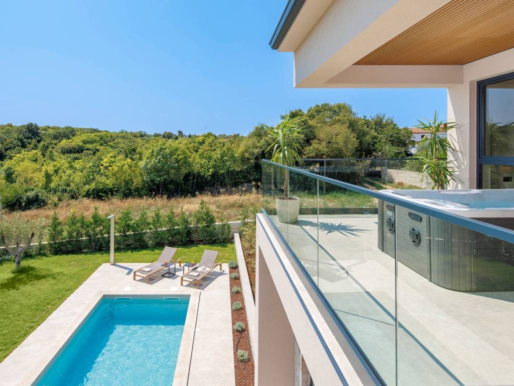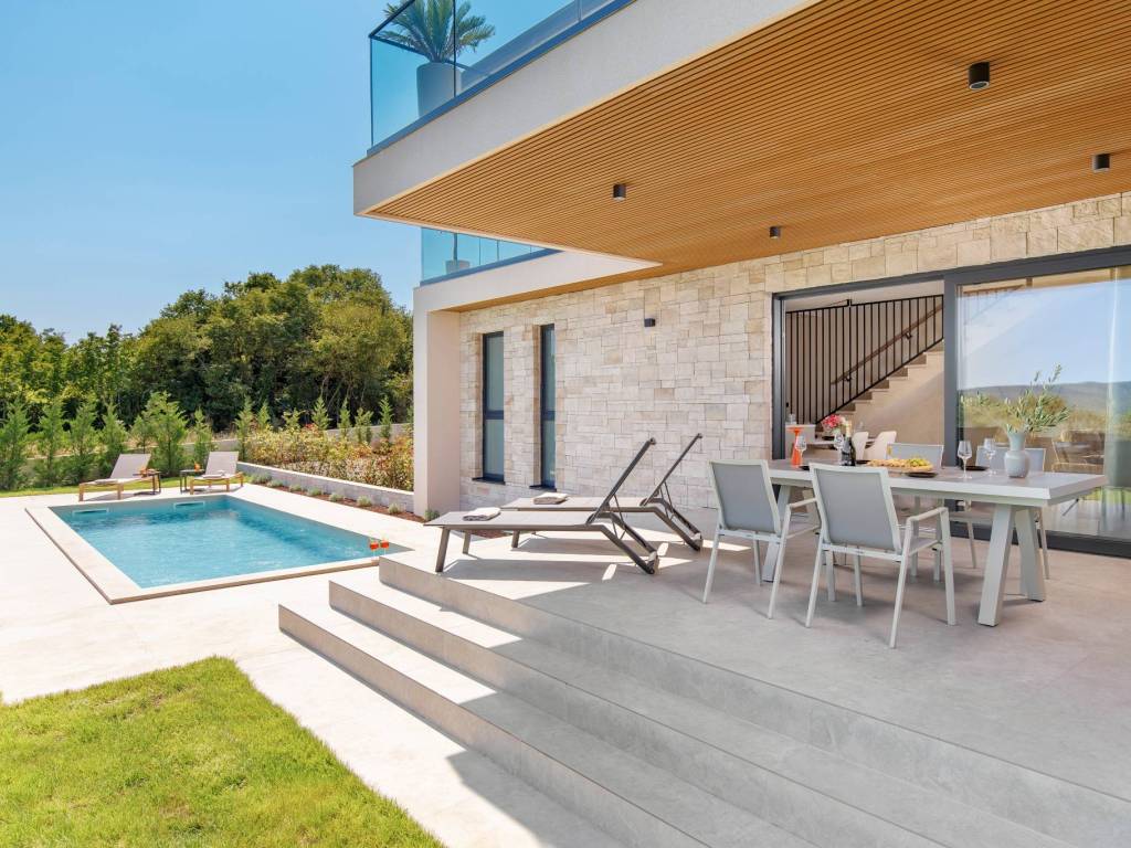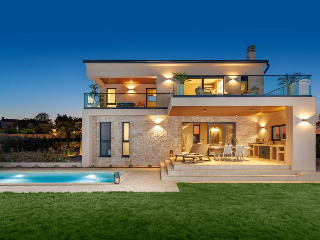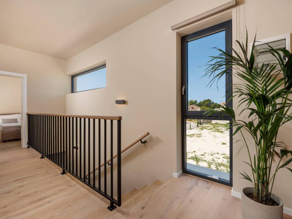 The house is located in a beautiful rural area, 10 km from the town of Labin. Situated on a spacious plot, this modern house has an exceptional design and carefully planned construction. Although it is still under construction, we can imagine what it will look like when it is fully completed. This two-story house offers living space with its 90 m2 of interior space and 52 m2 of outdoor terraces.