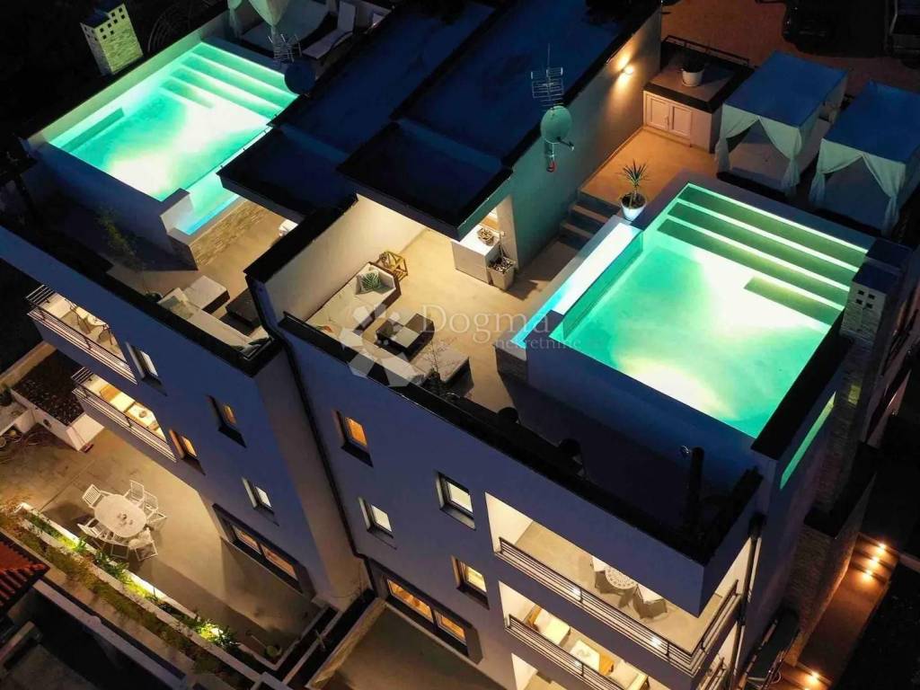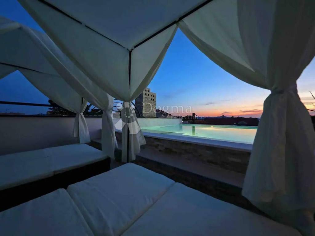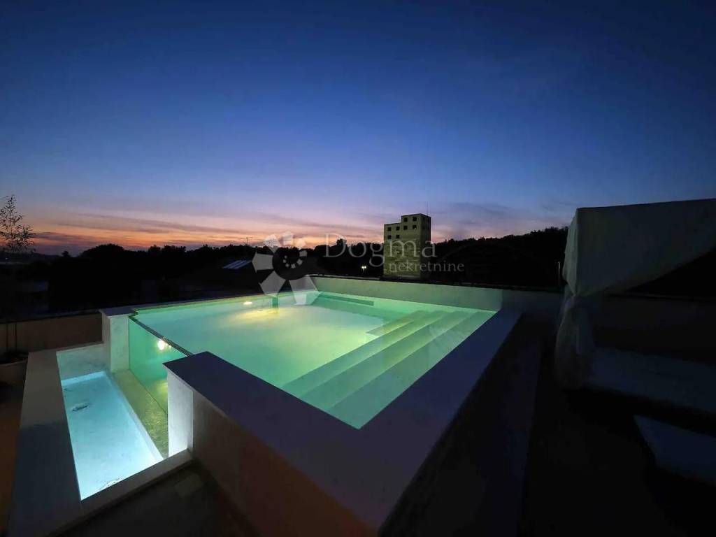 In Zadar, in the quiet location of Belafuža, there is a two-story penthouse that raises the standard of modern living. A spacious living room with a dining room and kitchen, three bedrooms and three elegant bathrooms are arranged on a total of 156.13 m of usable area. Of particular value is the private roof terrace with a heated pool and a sunbathing area - an oasis that offers unobstructed views and complete privacy. Two additional terraces expand the outdoor living space, while the double orientation ensures plenty of natural light throughout the day. The apartment is equipped with top-quality carpentry, five air conditioning units and a fireplace for a pleasant atmosphere throughout the year. External features include an access area and two private parking spaces. Surrounded by greenery, and just a few minutes from the sea and city amenities, this penthouse combines a peaceful everyday life and a luxurious lifestyle. An ideal choice for those looking for a prestigious property for their own residence or an investment with a high rate of return.