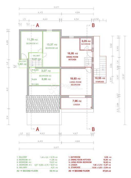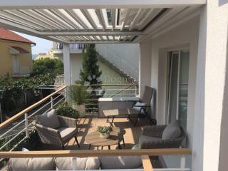 This spacious villa is spread over three levels ground floor, two upper floors, and an attic with a total built area of 297m (net 245m) on a 360m plot. The total usable area including the garden and parking spaces is an impressive 465m (net 272m). The main façade faces southwest, offering beautiful sea view.