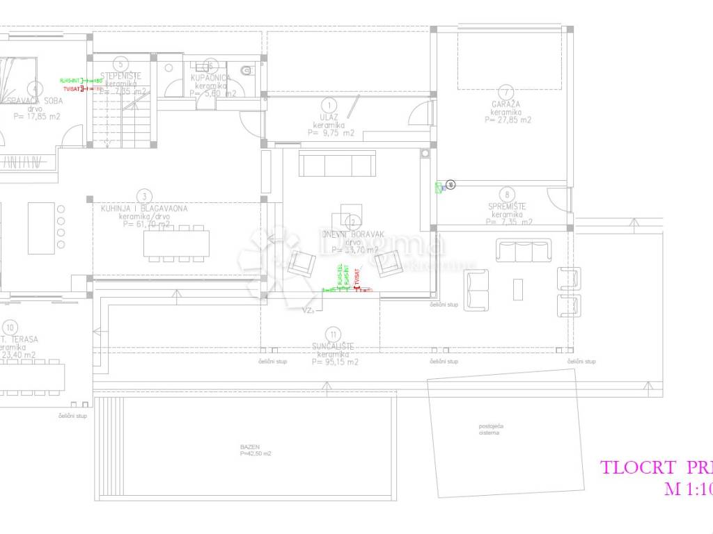 According to the project, the house consists of a basement with a total net area of 72.40 m, which includes a gym, storage room and boiler room. An internal staircase leads to the ground floor, where there is a garage and a spacious open-plan living area with a kitchen, dining room and living room. The ground floor also includes one bedroom, storage room, bathroom and covered terraces with a total net area of 221.90 m.
