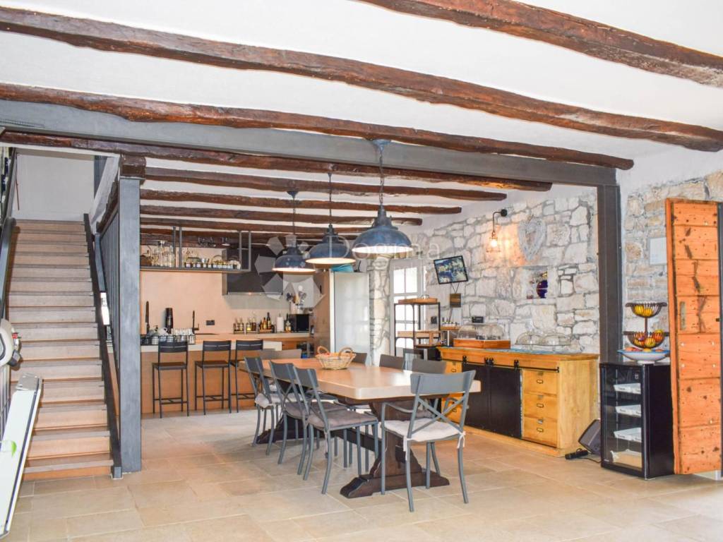 A charming rustic residence crafted from an authentic smaller stone building. The open-concept interior with a soaring 6-meter ceiling and no intermediate floor creates a dramatic, airy space filled with natural light and character.