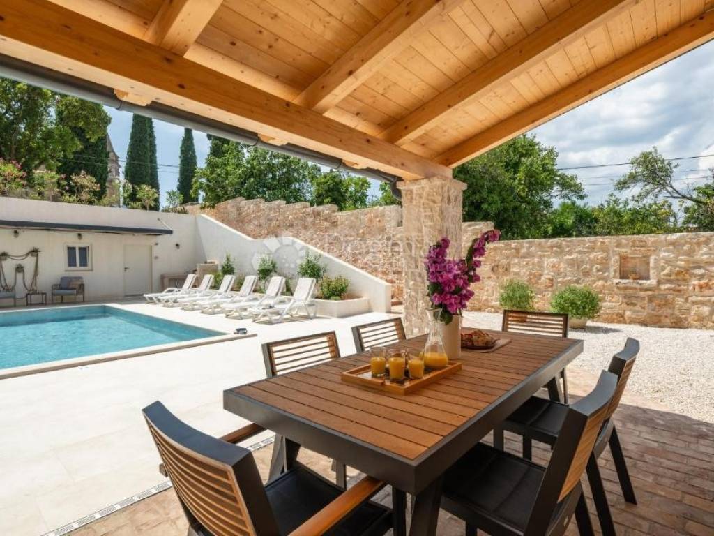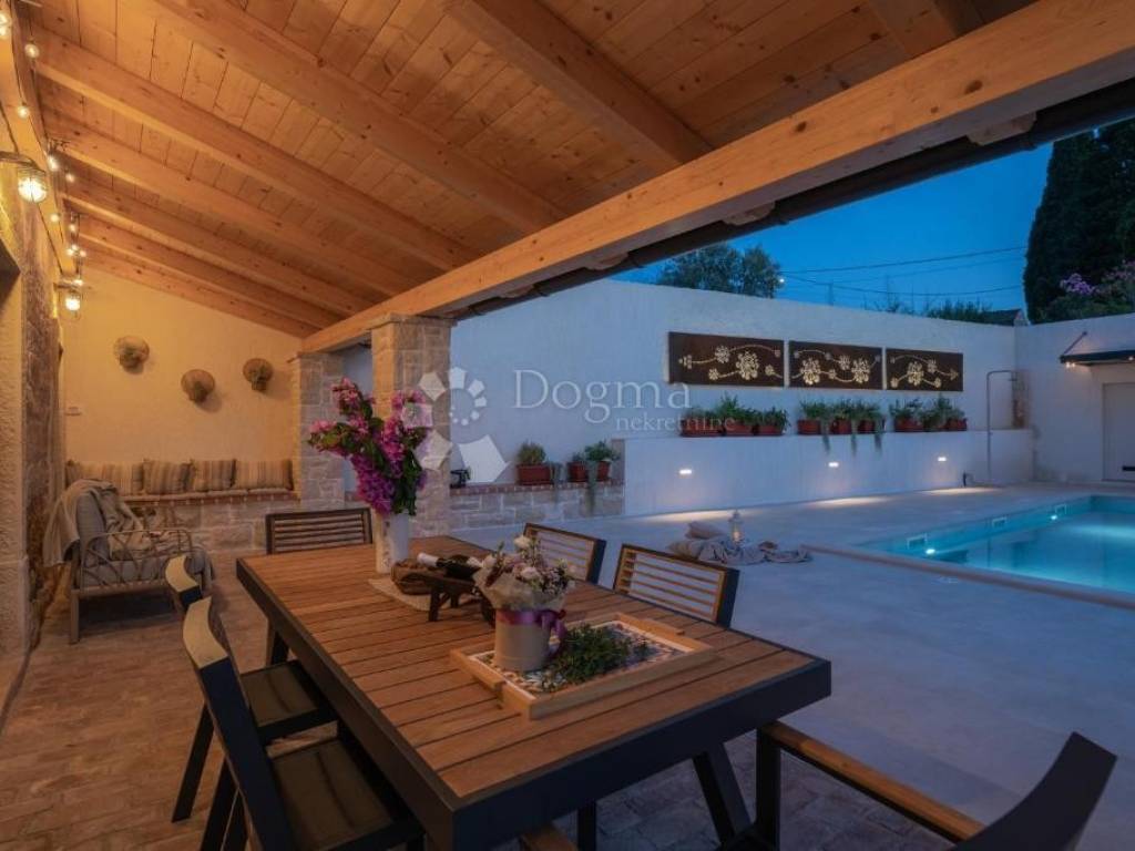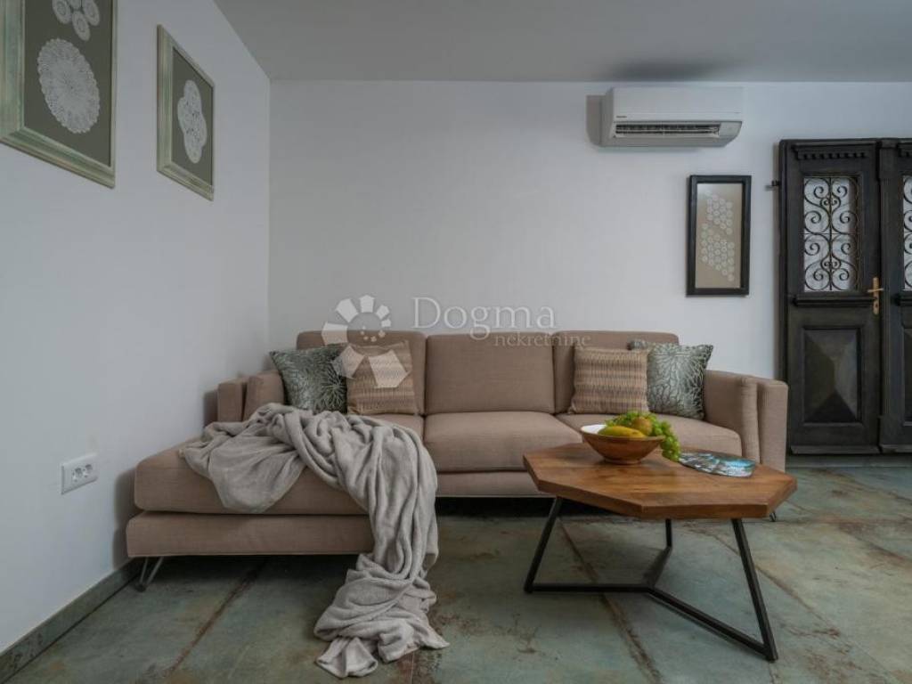 Located in the picturesque Rakalj, a small Istrian town with a rich history and authentic charm, this beautiful stone home perfectly combines tradition and modern comfort. Rakalj, known for its pottery heritage, sailors and fishermen, offers an ideal environment for a peaceful life or vacation, away from the tourist crowds. The proximity of cultural and historical sites, untouched nature and crystal clear sea make it the perfect destination for lovers of the Istrian way of life. This charming stone house is located on a plot of 480 m and extends over three floors with a total living area of 125 m. On the ground floor there is a spacious kitchen with dining area, a comfortable living room and a toilet. Internal stairs lead to the first floor, where there are two bedrooms, each with its own bathroom. On the top floor there is a spacious master bedroom with a private bathroom, providing complete comfort and privacy. Special attention has been paid to the equipment and interior. Underfloor heating in all bathrooms, air conditioning in every room and PVC windows with mosquito nets ensure comfort throughout the year. The house is furnished with carefully selected high-quality Italian furniture and is sold fully equipped. The garden is just as impressive as the interior. The covered terrace is perfect for enjoying a glass of wine with family and friends, while in front there is a swimming pool with a jacuzzi (4 x 8 m) with a water electrolysis system. The sunbathing area around the pool provides an ideal place to relax. Opposite the house is a summer kitchen with an outdoor barbecue and toilet, and next to it is a technical room for the 20 m pool. Access to the house is provided by an asphalt road, and the yard has been landscaped with special care - an electric gate, three parking spaces, a charging station for electric cars and lighting with sensors further contribute to practicality and safety. The ownership of the house is neat, without encumbrances, and the property is categorized with 4 *, which makes it an excellent opportunity for a year-round stay or a tourist investment. For more information and viewing, feel free to contact us with confidence! STEFANO PERUŠKO LICENSED AGENT Mobile 099/721-0395 stefano.perusko@dogma-nekretnine.com