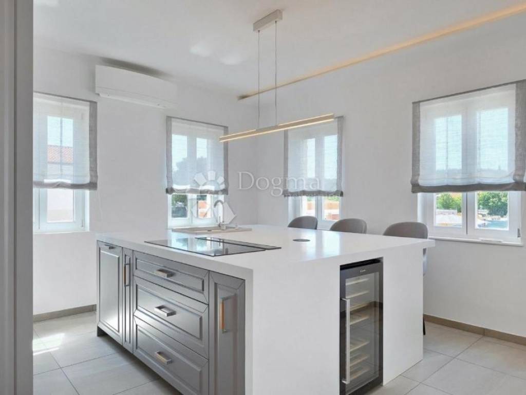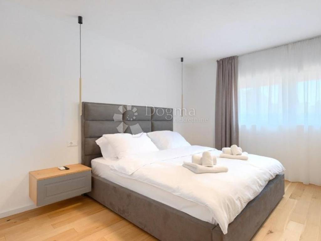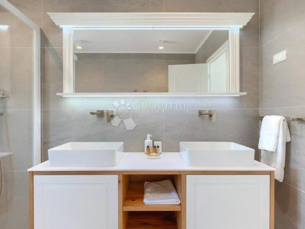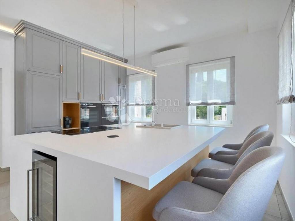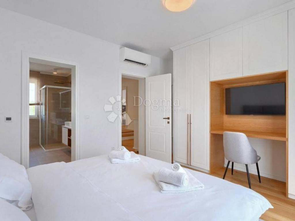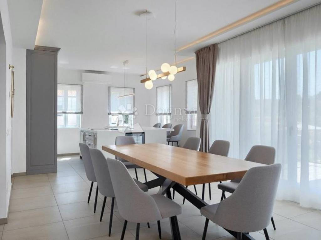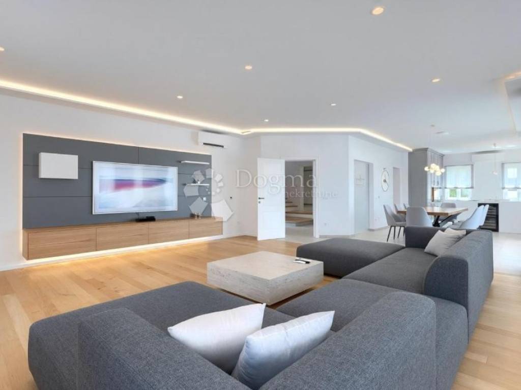 Additional Features: The villa is full of natural light, and only the highest quality materials were used in its construction. The joinery is made of Slavonian oak with triple-layered glass, and all the furniture is custom-made. The kitchen is equipped with Candy and Klarstein wine refrigerators, while heating is provided through underfloor heating on all floors and Daikin air conditioning units in each room. The villa offers five parking spaces, two of which are in the garage.