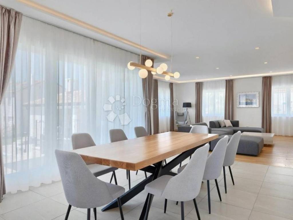 On the western coast of Istria, near the picturesque town of Rovinj, lies this exclusive Mediterranean-style villa with a spacious garden and a heated swimming pool, oriented towards the east, south, and west. The villa offers a net usable area of 438 m, spread over three floors: a basement of 155 m, a ground floor of 188 m, and a first floor of 95 m. Situated on a 1208 m plot, it perfectly combines luxury and functionality.