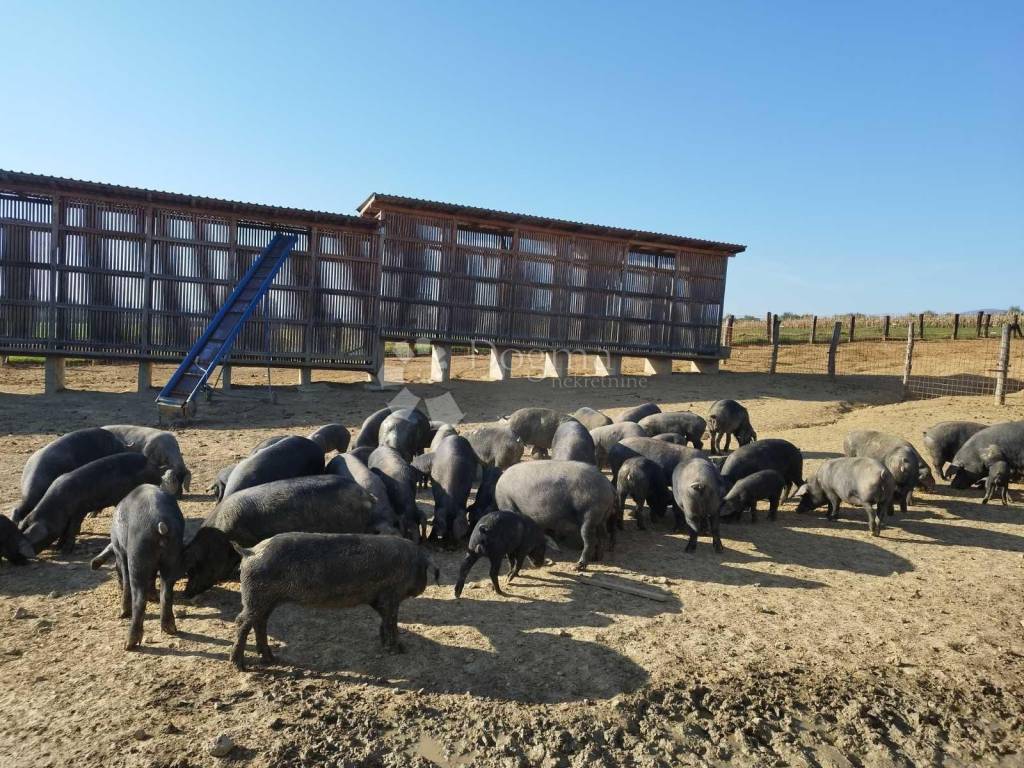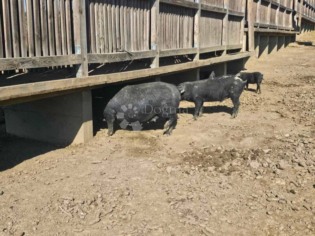 Cijelo zemljište je ograđeno armaturnom mrežom i šlipermima s električnim pastirom. Na parceli uz cestu su dvije starije kuće s dva brojila struje i priključkom za vodu te gospodarski objekti s prasilištem s petnaest bokseva, popratni objekt u kojem se nalazi mješaonica za hranu, spremik za kukuruze zapremnine dvjesto kvadrat te dva bunara s hidroforom.