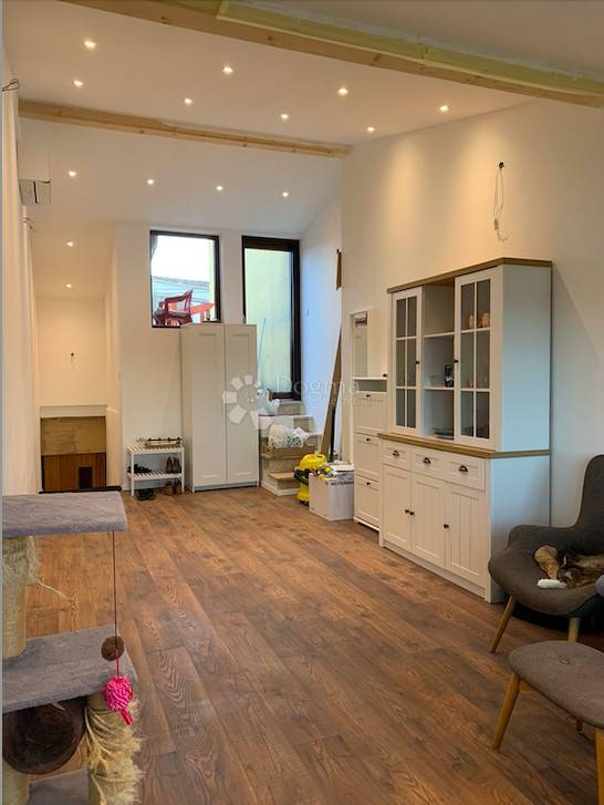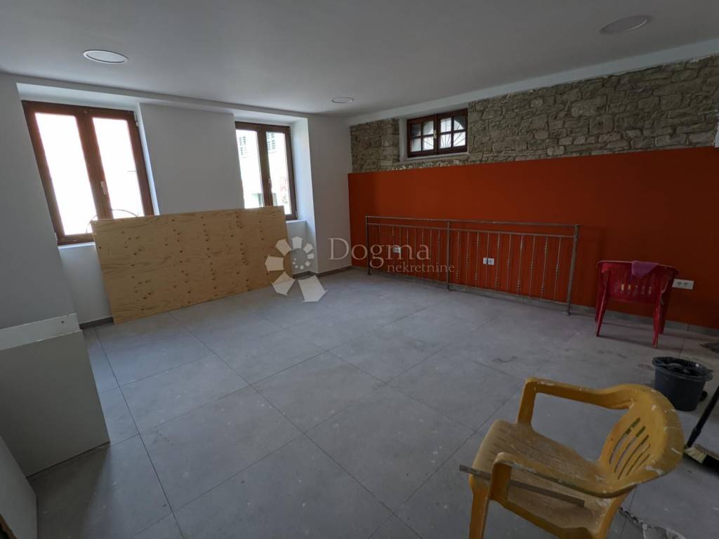 On top of a magical Istrian hill, in the heart of Motovun a medieval town known for its historical charm, truffles, culture and creative energy sits this unique house. Motovun is not only a romantic haven, but also an energy center: it is known for the intersection of dragon furrows, a place of strong positive energy that encourages creativity, harmony and inner peace. It is precisely because of these energies that Motovun is a favorite among artists and filmmakers, providing them with inspiration and tranquility to create their works. The first beaches are only half an hour away, and this location offers a combination of history, nature and spiritual renewal. This protected stone building, a combination of historical beauty and functionality, offers opportunities for business and residential purposes. Basement: a space of 24 m2 used as storage space and leads us to the courtyard. Ground floor: Contains a business space with a comfortable entrance, one room and ancillary rooms. There is also a building-ready area for a spacious two-bedroom apartment with direct access to a private yard, which allows for a multitude of possibilities from rental to private enjoyment. The total area is 128 m2. First floor: It consists of an apartment with two bedrooms, a living room, a kitchen with a dining room and a bathroom. A beautiful terrace offers a view of the fairy-tale Mirna River valley and a space for enjoyment. The total area is 128 m2. The living space allows for various adaptations whether for a family, tourist rental or creative projects. The entire house has plenty of light, authentic wooden elements and charming historical details. Courtyard: A private yard perfect for growing fruits and vegetables, which makes this property a real treasure in Motovun. A special advantage parking in front of the house! This house is located in a unique location in Motovun because, in addition to being in the very heart of the town, it has parking right in front of the house. This is an extremely rare and valuable advantage that makes living or doing business here incomparably more convenient. Historic charm and practicality: The house has authentic stone window frames, wooden shutters and semicircular openings. The construction is made of solid stone walls. It was completely renovated and energy-efficiently renovated just a few years ago. The house is located in a row, but it is the last in the row. Breathtaking view: The terrace, balcony and windows offer an unforgettable panoramic view of the Mirna River valley - a sight you will want to keep forever.