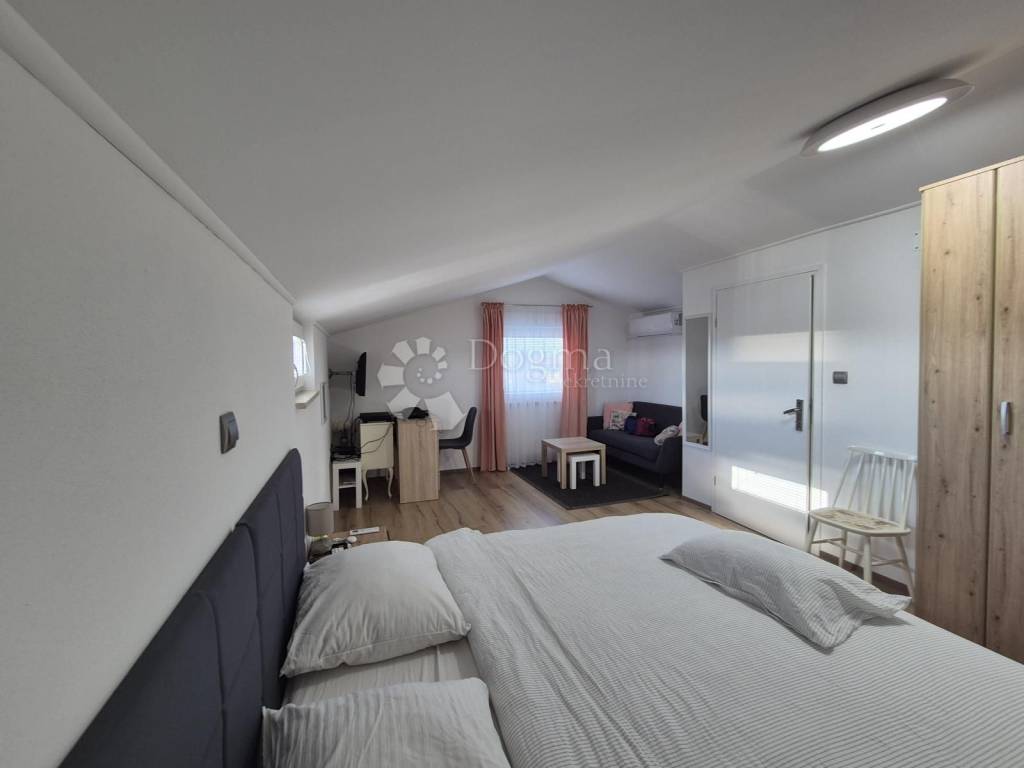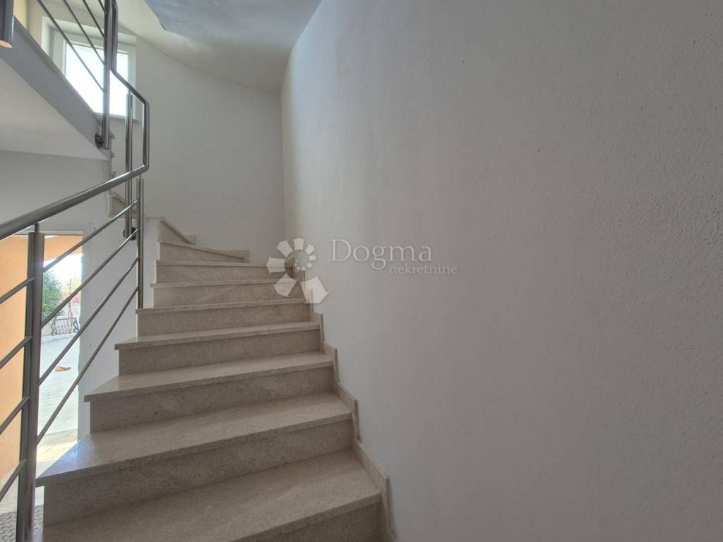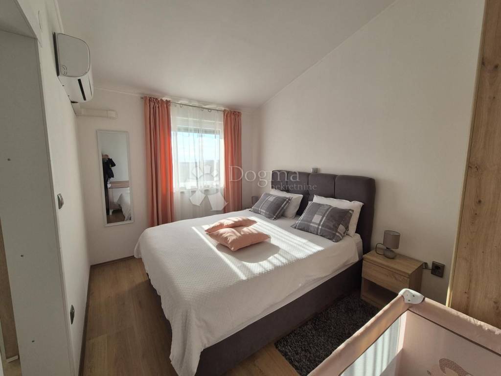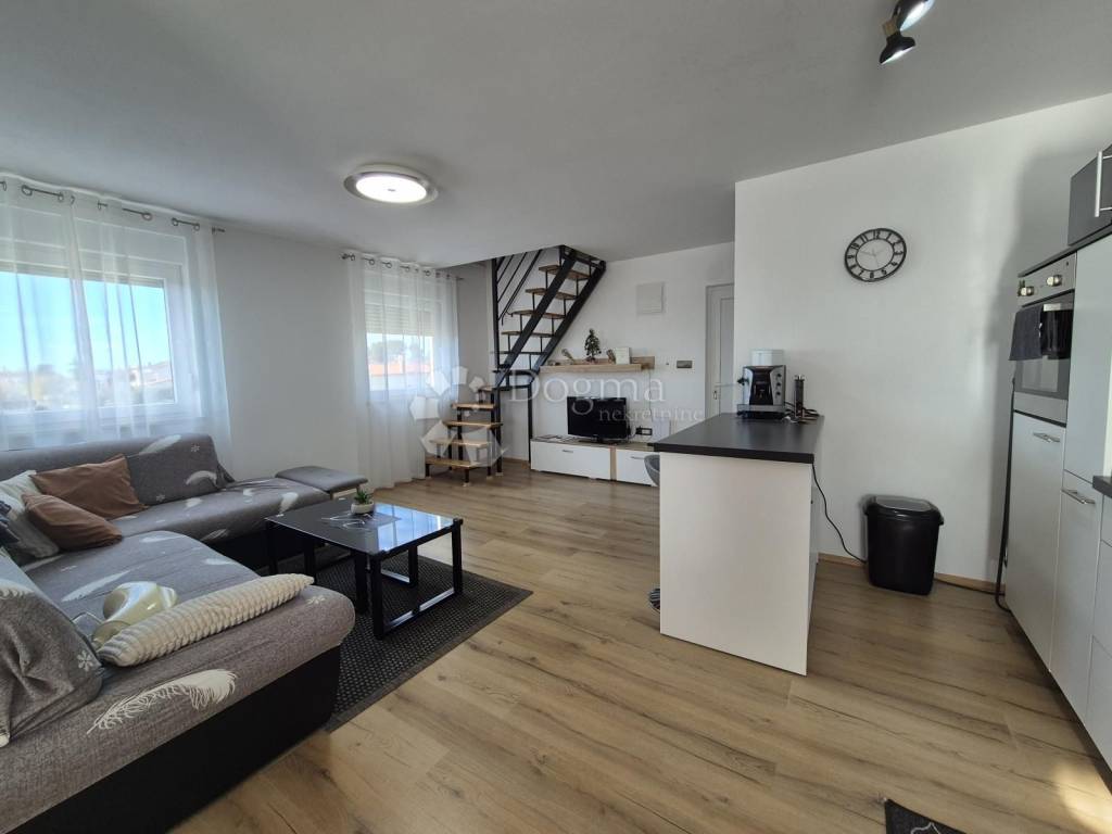 For sale is a spacious and sunny apartment in Vodnjan with a beautiful view of the Brijuni National Park. The apartment is very comfortable and warm, thanks to the excellent insulation that ensures a pleasant temperature in the winter months, while providing freshness and comfort in the summer. Located on the second floor of a small family building, the apartment is spread over two floors. On the first floor there is a bathroom, one bedroom and a spacious open space living room, kitchen and dining room from which you can exit to the terrace with a beautiful view of the sea. On the second floor there is another bathroom and a spacious bedroom. The apartment has two parking spaces in the yard and a small woodshed. Given its proximity to the sea, only 5 kilometers, as well as all the essential amenities for life, such as a school, post office, bank and shops, the apartment offers the perfect combination of practicality and peace. It is an ideal place for a family or anyone who wants to enjoy a comfortable life, while at the same time being in a peaceful environment. For more information or a viewing of this beautiful property, please feel free to contact me.