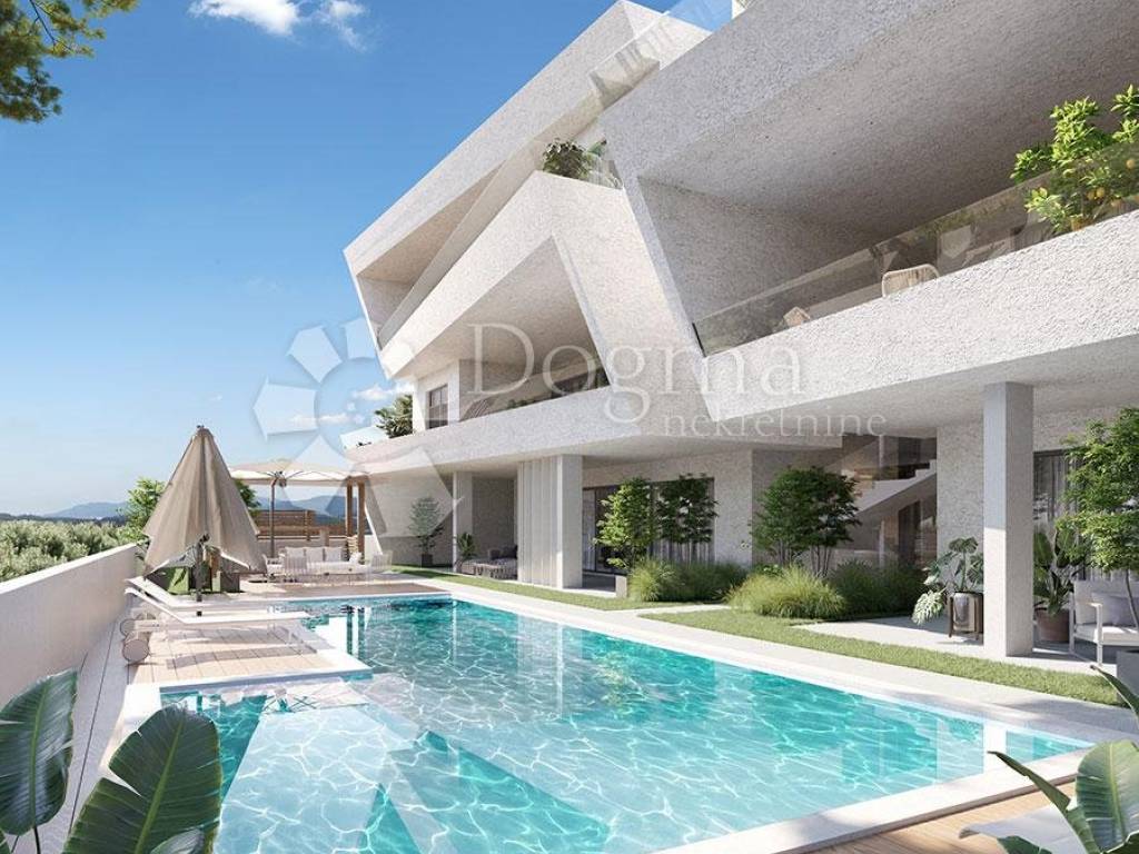 The apartment is part of a small residential building with a total of six residential units. The building is located in a quiet area just 150 meters from the sea and the beach. All amenities necessary for everyday life are nearby. All apartments will be fully furnished and equipped with household appliances. In front of the building, there will be a shared pool and sunbathing area.