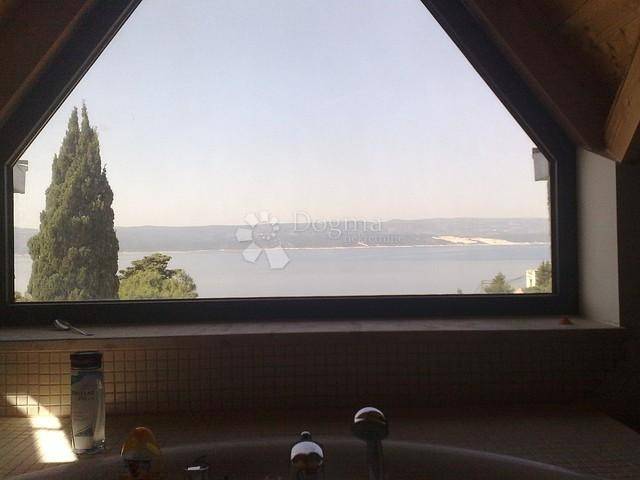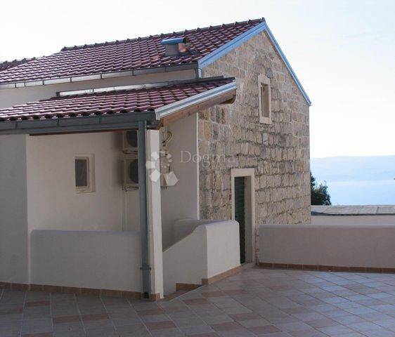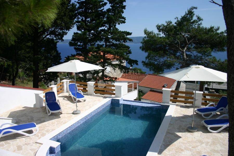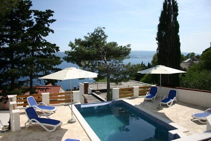from which there is a wonderful view of the sea and the island of Brač. The rear of the house leads to a terrace with a pergola and a children's pool, and in an extension on an elevated level