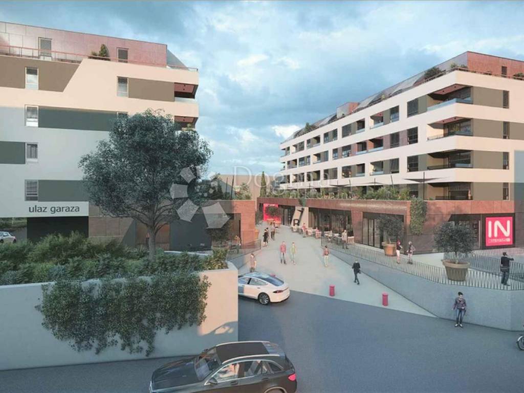 Višestambena građevina, sukladno detaljnom planu obuhvaća 104 stambene jedinice s garažnim prostorom, spremištima i 7 poslovnih prostora.