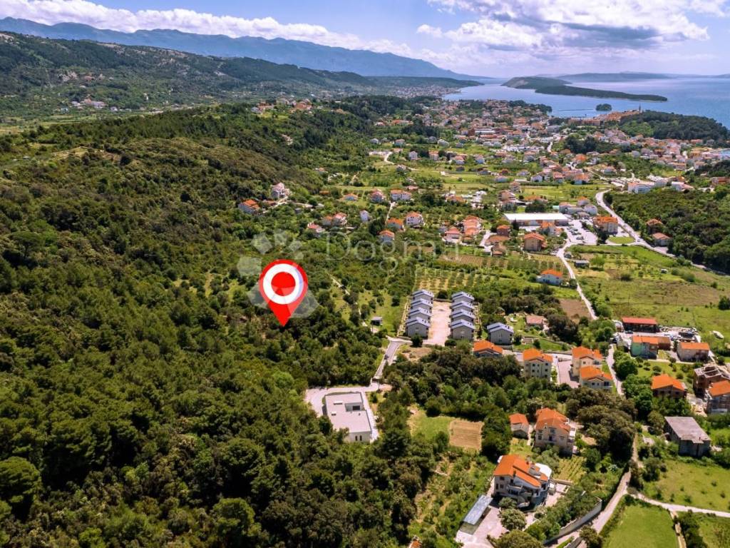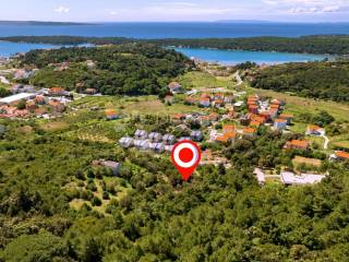 Smještena visoko, pruža fantastičan pogled na more, a budući da je okrenuta prema zapadu, nudi sunce i danju i noću. Parcela sadrži mnogo starih lijepih maslina i nalazi se u mirnom području, otprilike 10 minuta vožnje automobilom do starog grada Raba. Ova nekretnina pogodna je za one koji žele graditi veće imanje ili kuću. Prodavatelji su fleksibilni s veličinom parcele i ceste. Nalazi se na kraju građevinske zone, pruža veliku privatnost, a okružena je mediteranskom šumom na sjeverozapadu. Sadašnji vlasnik posjeduje i zemljište sjeverozapadno od parcele, što daje kupcu mogućnost kupnje zemljišta izvan građevinske zone koje se može koristiti za poljoprivredu.
