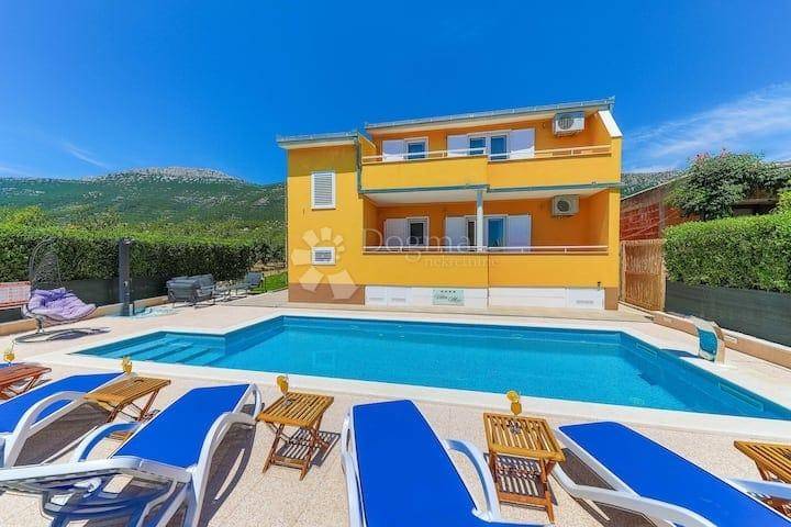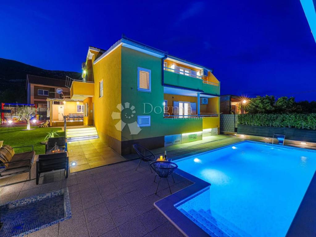 Discover the fusion of Mediterranean charm and modern comfort in this beautiful 260 m villa, located in the peaceful surroundings of Kaštel Lukšić. Designed for the complete comfort of 12 guests, this property represents the perfect opportunity for those looking for a high return on investment through year-round tourist rental.