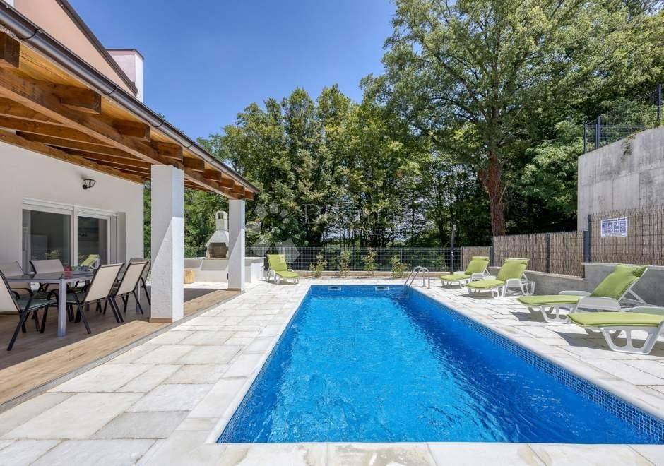 For sale is a semi-detached house located in the vicinity of Tinjan, built in 2022. The house has an area of 84 m2 and spans two floors, with a plot of 268 m2 and two parking spaces.