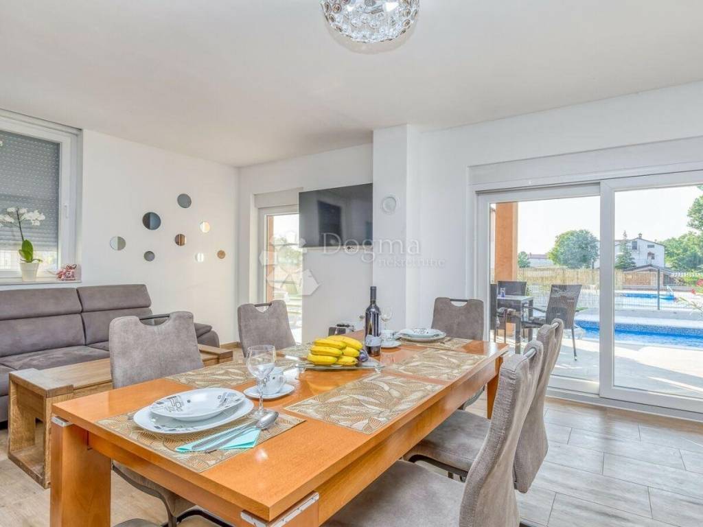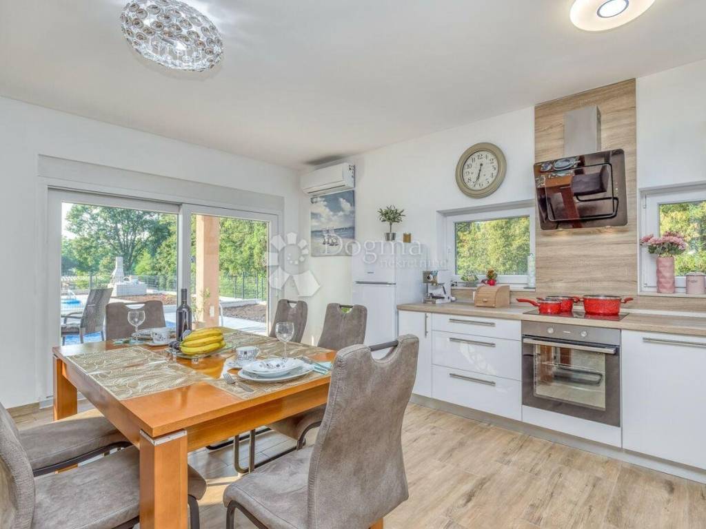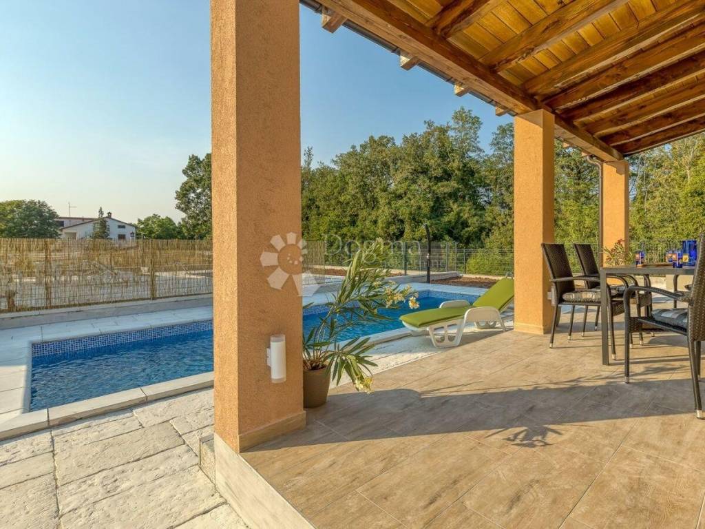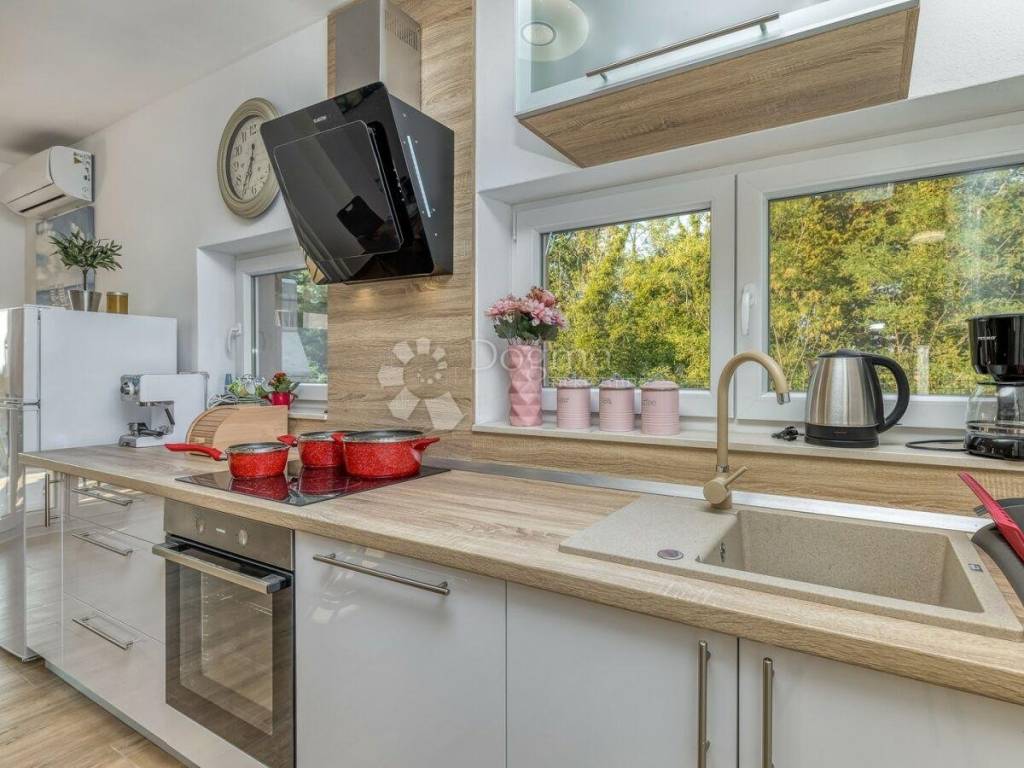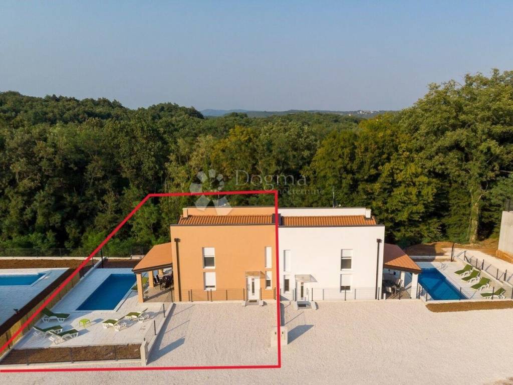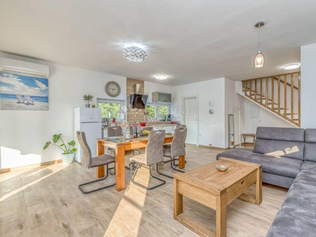 For sale is a semi-detached house located in the vicinity of Tinjan, built in 2022. The house has an area of 84 m2 and spans two floors, with a plot of 268 m2 and two parking spaces.