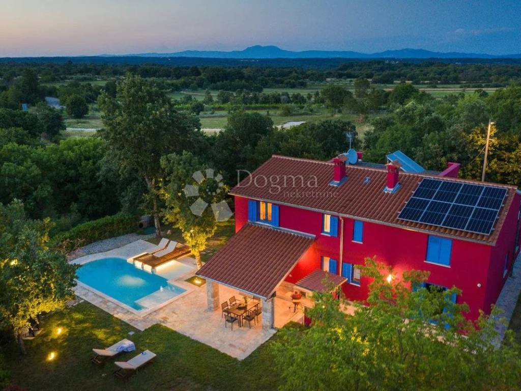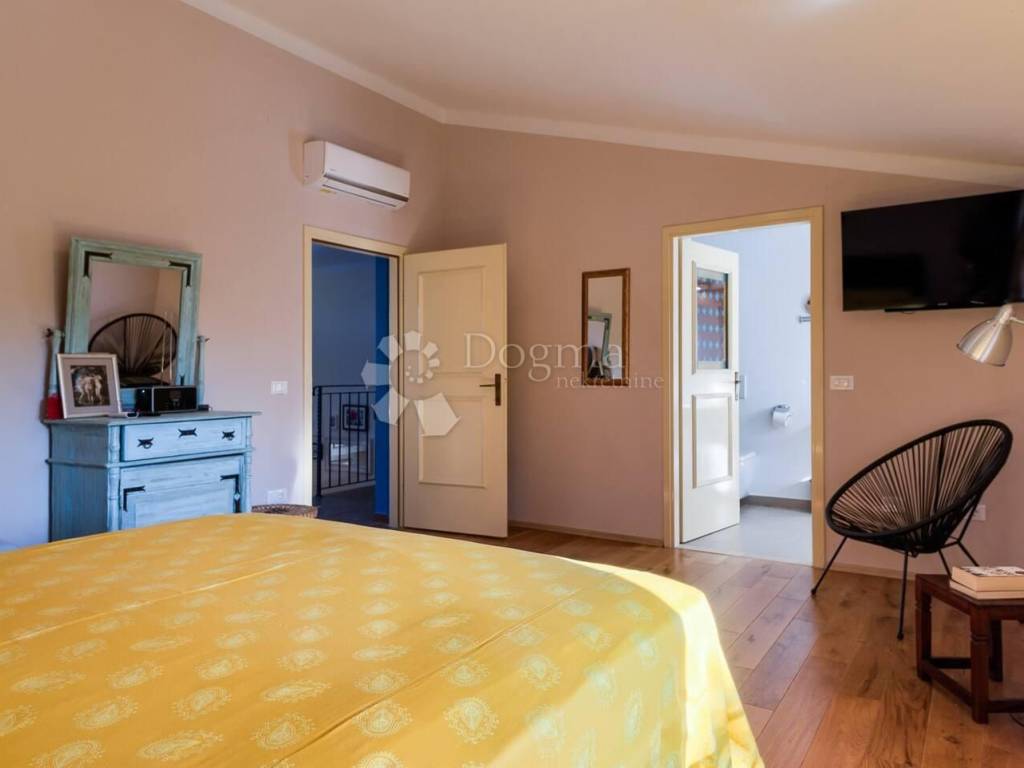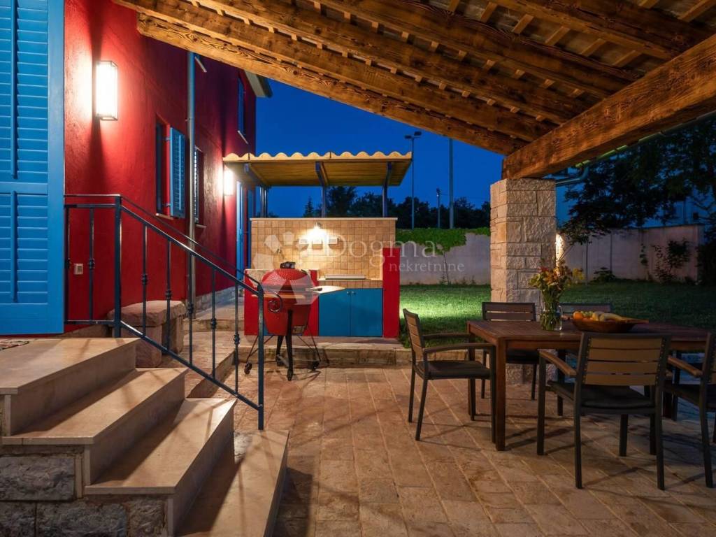 This beautiful 320m2 house is situated in a peaceful environment not far from Barban. The ground floor charms with its relaxing sauna and jacuzzi, two spacious bedrooms with private bathrooms, a guest toilet, and a living room, kitchen, and dining area merging into a unique open space concept. It leads to a delightful outdoor summer kitchen.