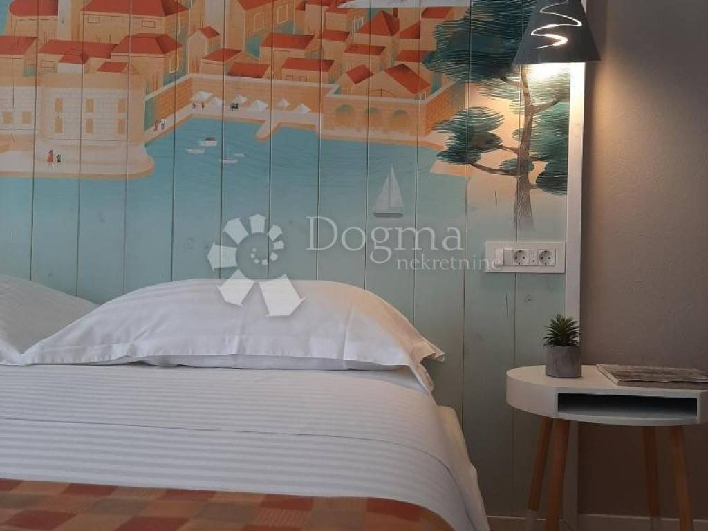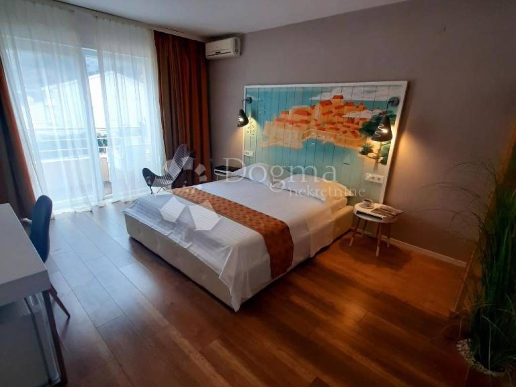 Predivan obiteljski hotel na fenomenalnoj poziciji 50m do mora i na okućnici od 750 m2. Objekt se sastoji od tri etaže od kojih je na prizemlju teretana i restoran, na 1. katu se nalazi jedan apartman od 70m2, dvije sobe sa jednom kupaonom i jedna odvojena soba sa vlastitom kupaonom. Na drugom katu se nalazi pet dvokrevetnih soba sa kupaonom, od kojih su četiri sa balkonom. Hotel ima odličnu turističku popunjenost i kompletno je obnovljen izvana i iznutra.