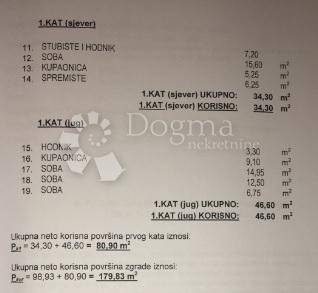 The total net area of the building is 179.83 m2. Every house has a yard. The price includes everything except floor coverings and toilets that the buyer has to choose and adjust to their own wishes. If the buyer wants, you can make a pool in the yard (optional). Great potential for tourism but also a peaceful family life!