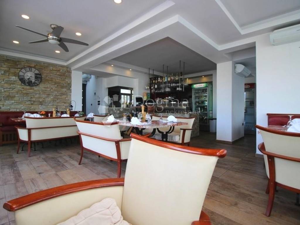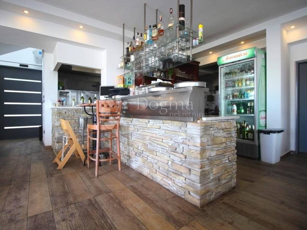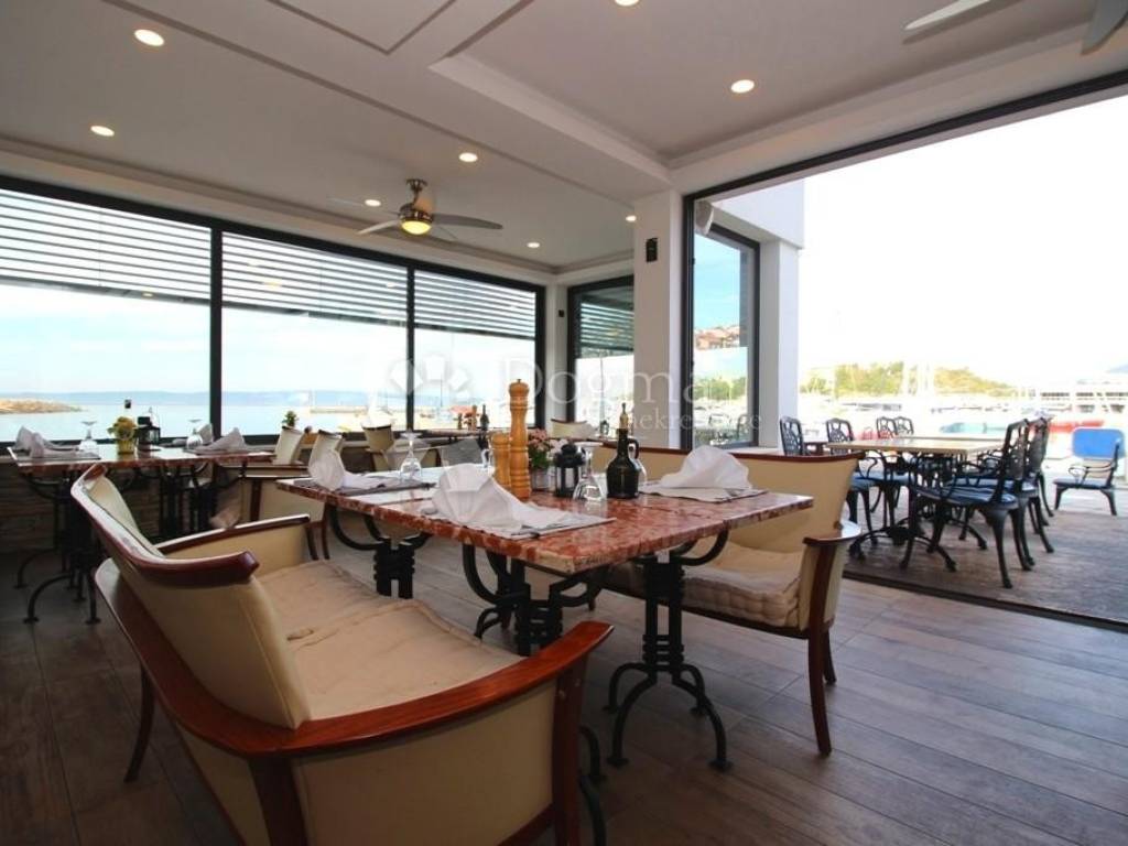 Poslovni prostor se sastoji se od sale koja se doslovno nalazi iznad mora, prostora namijenjenog za kuhinju, spremišta, šanka, dva sanitarna čvora i vanjske terase koja je u najmu lučke kapetanije. Na katu se nalazi garderoba i dvije kupaone . Na katu se nalazi i veliki otvoreni prostor koji po želji budućeg vlasnika može biti prekrasan stan iznad samog mora ili se može povećati kapacitet poslovnog prostora (restorana) na gornju etažu.(idejno rješenje za kat kao stan u galeriji)