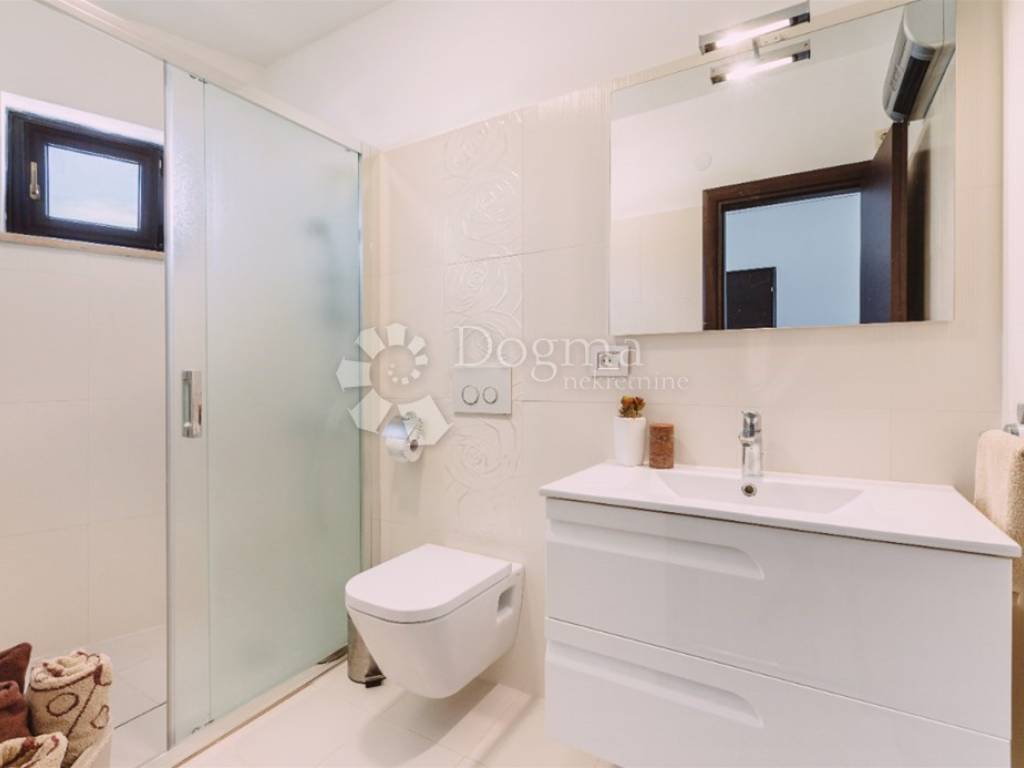 The ground floor has a toilet, bathroom, one bedroom and a spacious kitchen, dining room and living room with access to a covered terrace. The spacious covered terrace is literally an oasis for fun and socializing with your loved ones. On the covered terrace there is billiards, table football and darts for those who want a little more active vacation and a large dining table (for 12 people) with barbecue for those who want to spend their vacation enjoying, socializing and quality local food. In the yard of the house is also a space for the smallest members of the family, players garden.