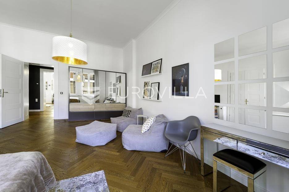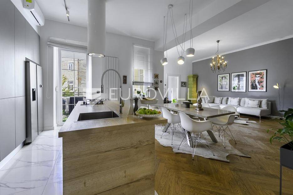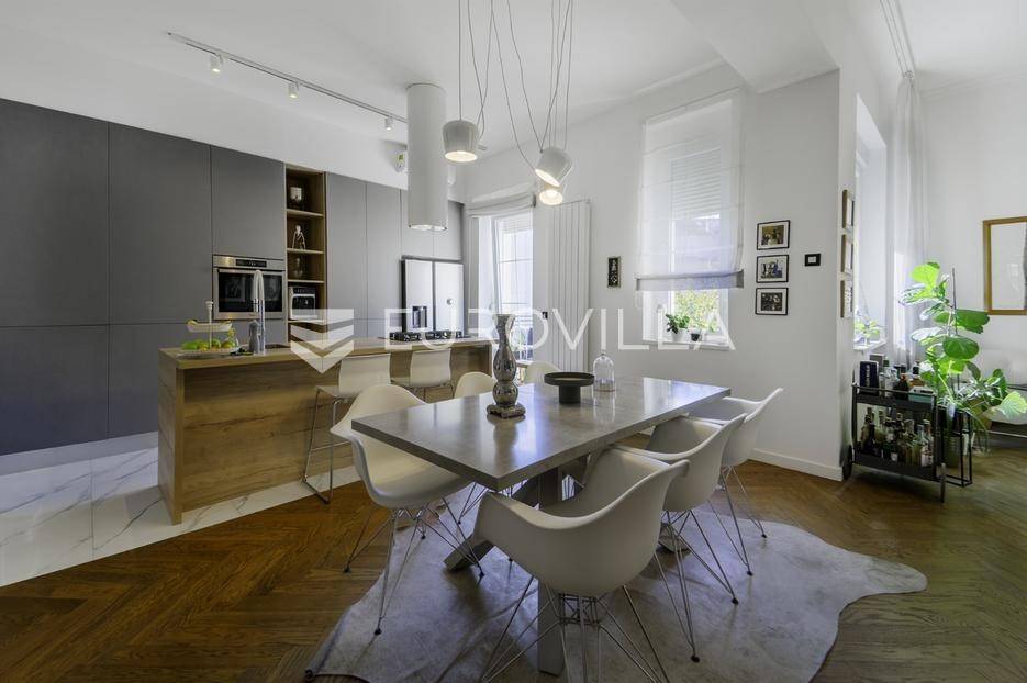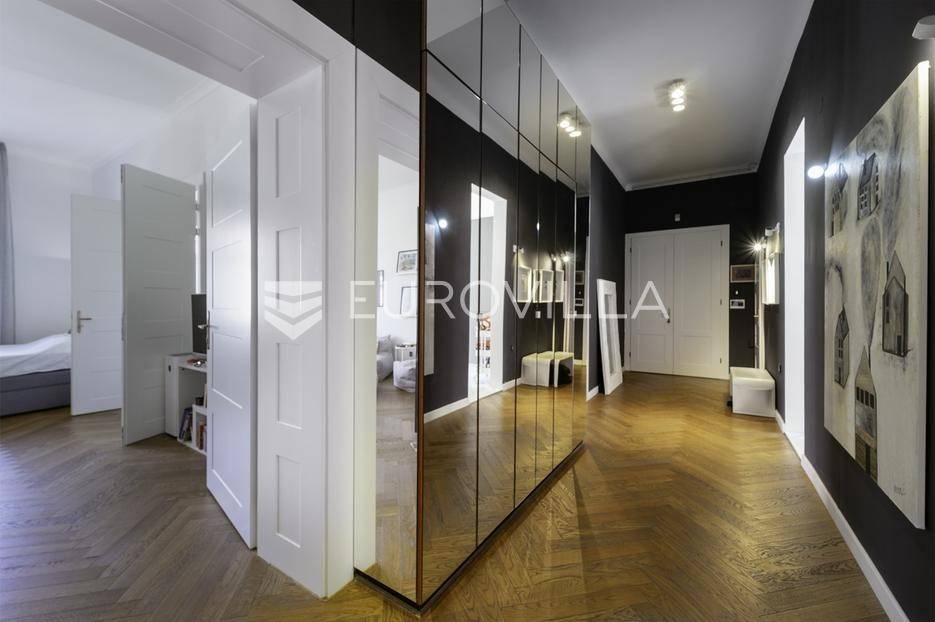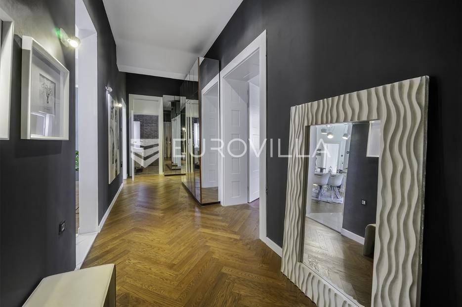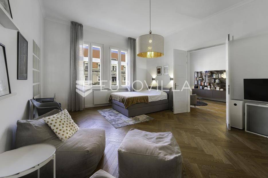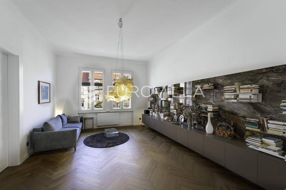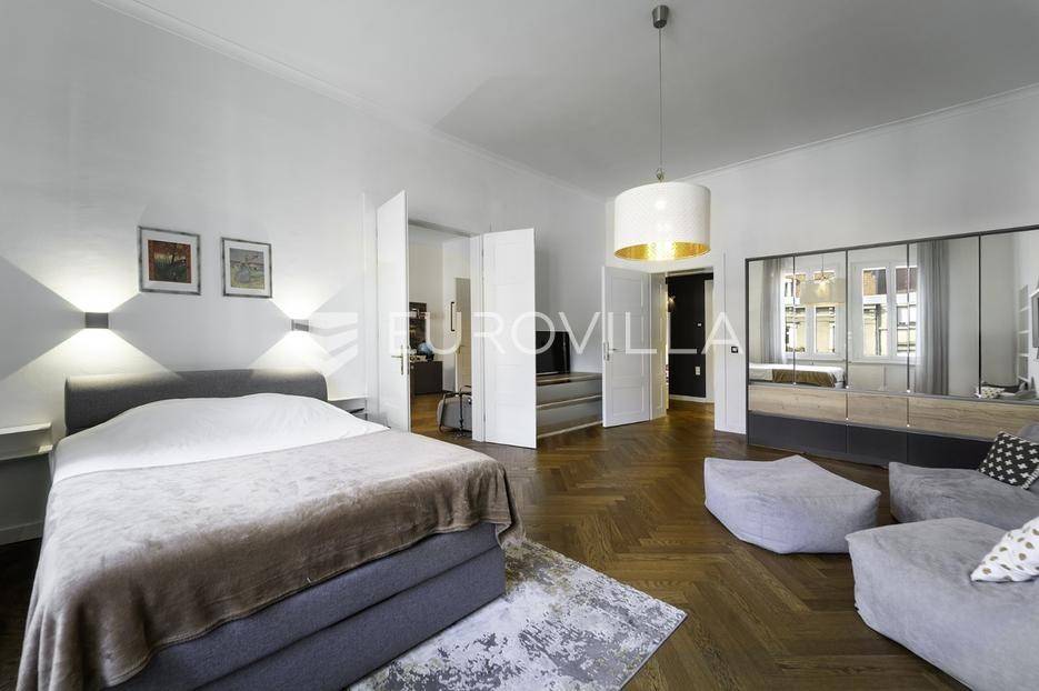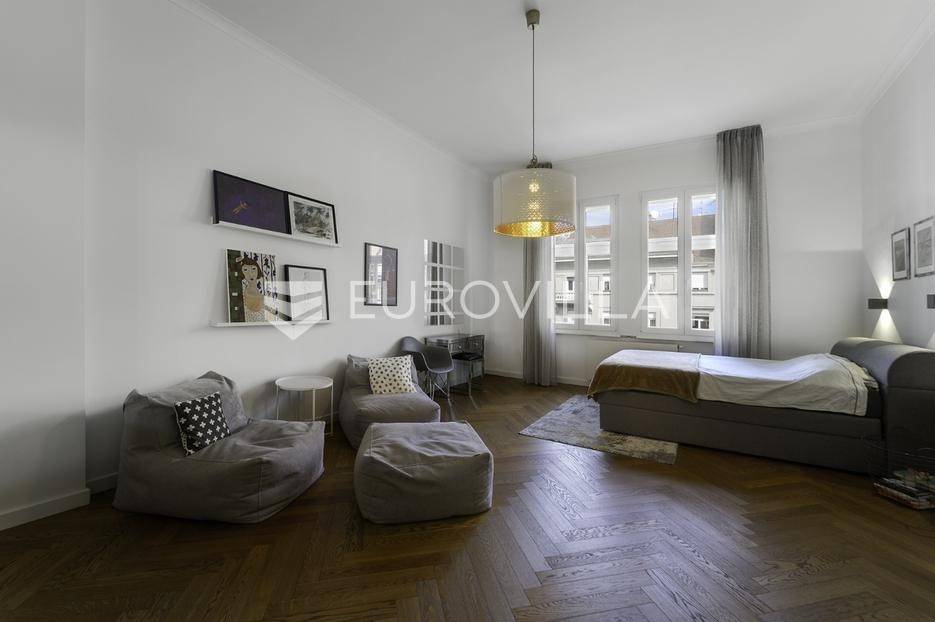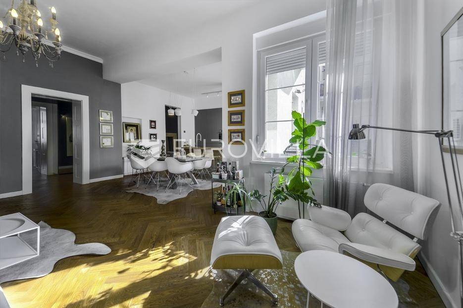 Strogi centar, Franje Račkog, luksuzan četverosoban stan zatvorene površine 160,89 m2 i balkonom 2,26 m2 koji gleda na mirnu dvorišnu stranu na 3. katu odlično održavane zgrade na idealnoj lokaciji. Pripada mu uređeno spremište u podrumu zgrade i dio potkrovlja.Stan se sastoji od ulaznog hodnika, prostranog dnevnog boravka, kuhinje i blagovaonice otvorenog tlocrta s izlazom na balkon, master sobe s odvojenom garderobom, dvije spavaće sobe i dvije kupaonice. Postoji mogućnost dobivanja još jedne spavaće sobe.Stan je potpuno renoviran, korišteni samo najkvalitetniji materijali pazilo se na svaki detalj. Grijanje plinsko etažno, klimatiziran, PVC stolarija… Nalazi se u neposrednoj blizini Trga bana Josipa Jelačića, svih društvenih i javnih sadržaja te javnog prijevoza.Za sve ostale informacije stojimo na raspolaganju.