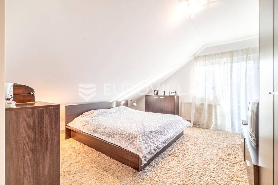 Dugo selo, odlično održavana samostojeća kuća površine 243 m2 razvijena kroz dvije nadzemne etaže s okućnicom od 535 m2.Visokokvalitetna gradnja iz 2006 godine.Prizemlje se sastoji od ulaznog hodnika, open-space koncepta kuhinje, dnevnog boravka i blagovaonice s izlaskom na terasu, dvije spavaće sobe, kupaonice i zasebnog toaleta.Kat se sastoji od hodnika, dvije spavaće sobe, kupaonice te master spavaće sobe sa zasebnom kupaonicom. Sve sobe imaju izlaz na balkon.Kuća je u vrhunskom stanju, ne zahtijeva nikakve građevinske zahvate. Opremljena klima uređajem u dnevnom boravku, kvalitetnim pvc prozorima s komarnicima, stiropor fasadom od 15 cm, crijepom kao završni pokrov uz izolaciju od 50 cm.Dvorište ograđeno te ima mjesta za parkiranje više automobila.Kuća pruža privatnost u iznimno mirnom okruženju.Za dodatne informacije stojimo Vam na raspolaganju.