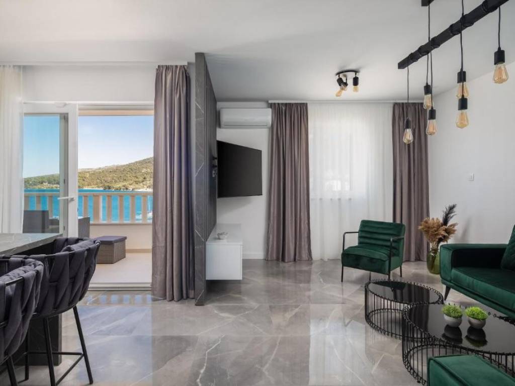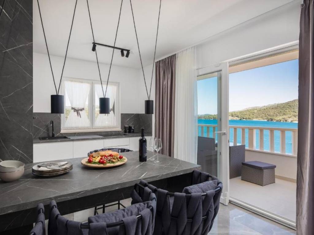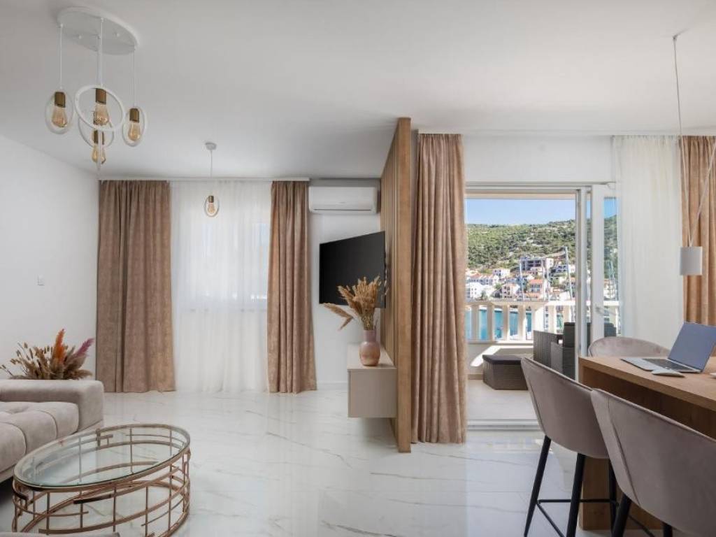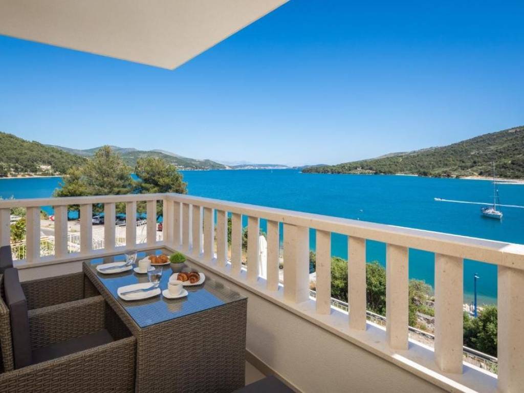 Three apartments (S3, S4 and S6) are for sale in a small residential building located in an excellent location, in the first row to the sea in the Marina settlement. The building has a total of 6 residential units spread over three floors: ground floor, first and second floor. Apartments S3 and S4 are located on the first floor, and apartment S6 is on the second floor of the building.They consist of a living room, kitchen, dining room, two bedrooms, hallway, toilet, bathroom and loggia. They also have one outdoor parking space.The subject of the sale is:Apartment S3: living area 58.17 m2 + loggia 7.41 m2 + parking space, Price: 330,000 €Apartment S4: living area 60.09 m2 + loggia 7.41 m2 + parking space, Price: 330,000 €Apartment S6: living area 60.09 m2 + loggia 7.41 m2 + parking space, Price: 330,000 €The apartments are southeast-oriented, providing plenty of sunlight and warmth throughout the day. All apartments offer a stunning open sea view. They are being sold fully furnished and equipped, ready to move in or for tourist rental.All residents have access to a shared swimming pool and sun deck, children’s playground, as well as a gym located on the ground floor of the building. This is an excellent location, close to the sea, the town center, and all amenities. The apartments are an ideal oasis for those seeking peace and relaxation, as well as for those looking for a profitable investment in tourism.Distances: 50 m from the sea, 12 km from the town of Trogir, and 17 km from Split airport.