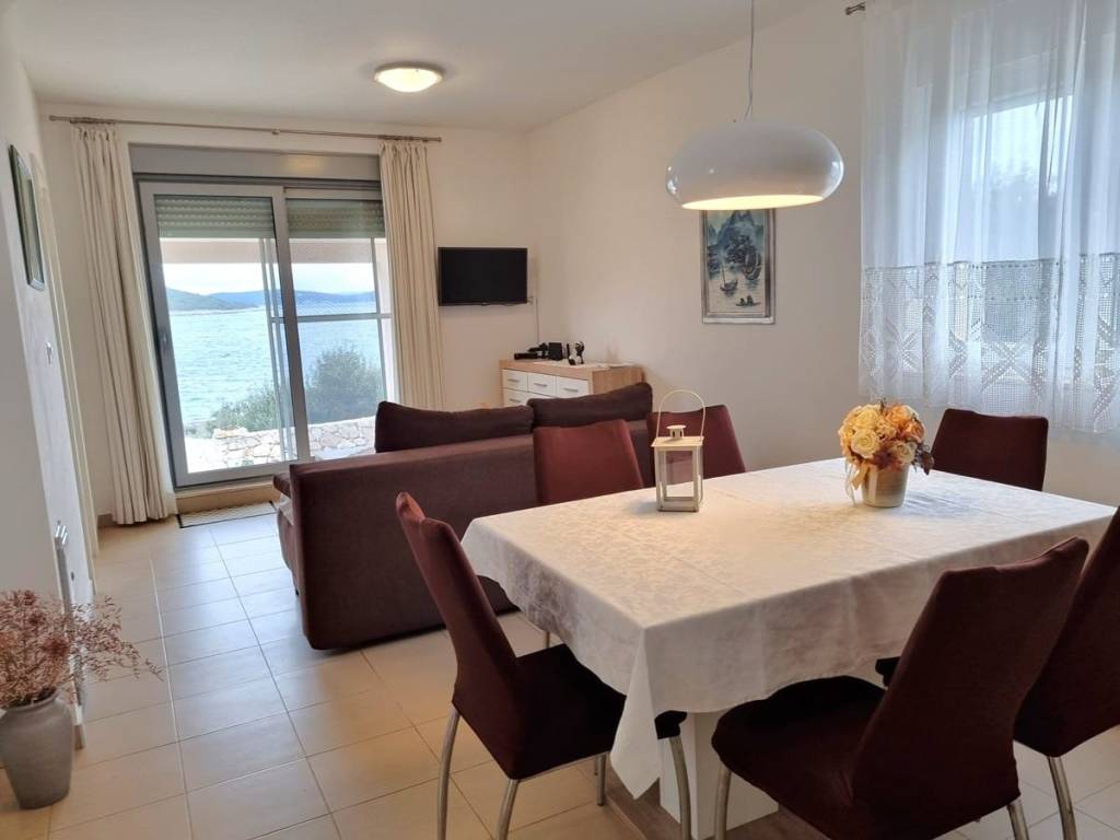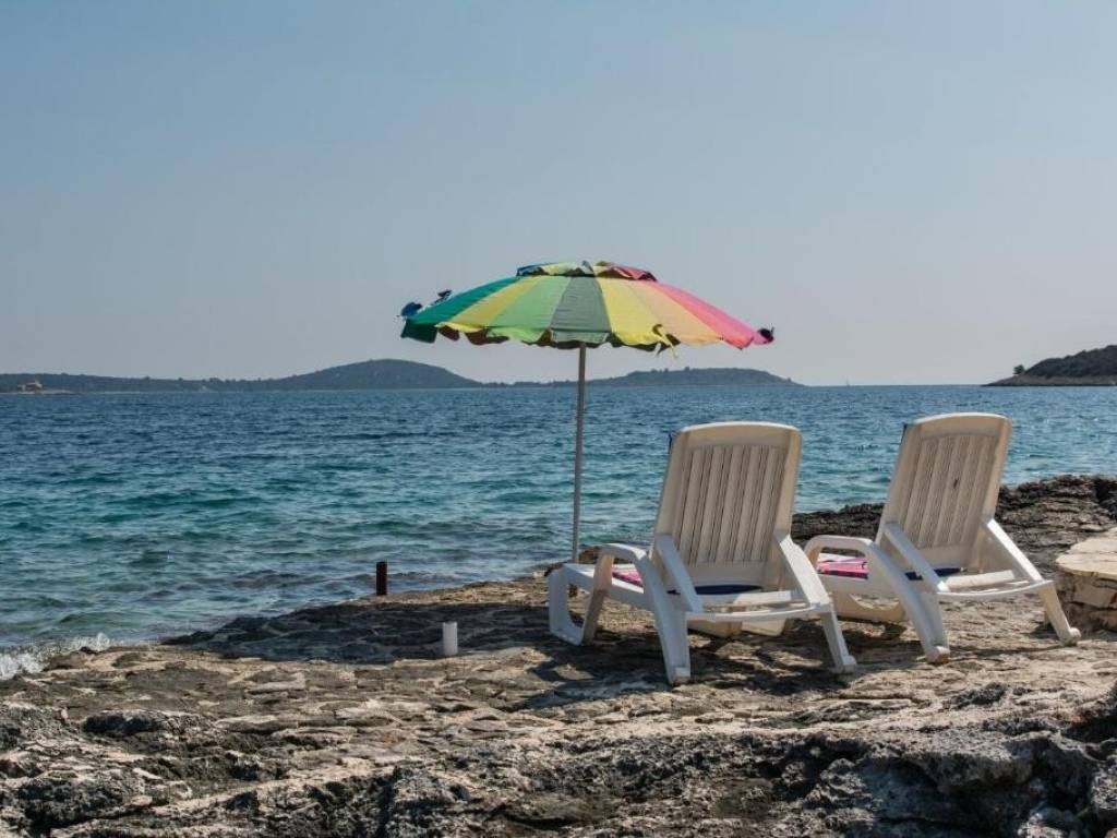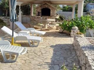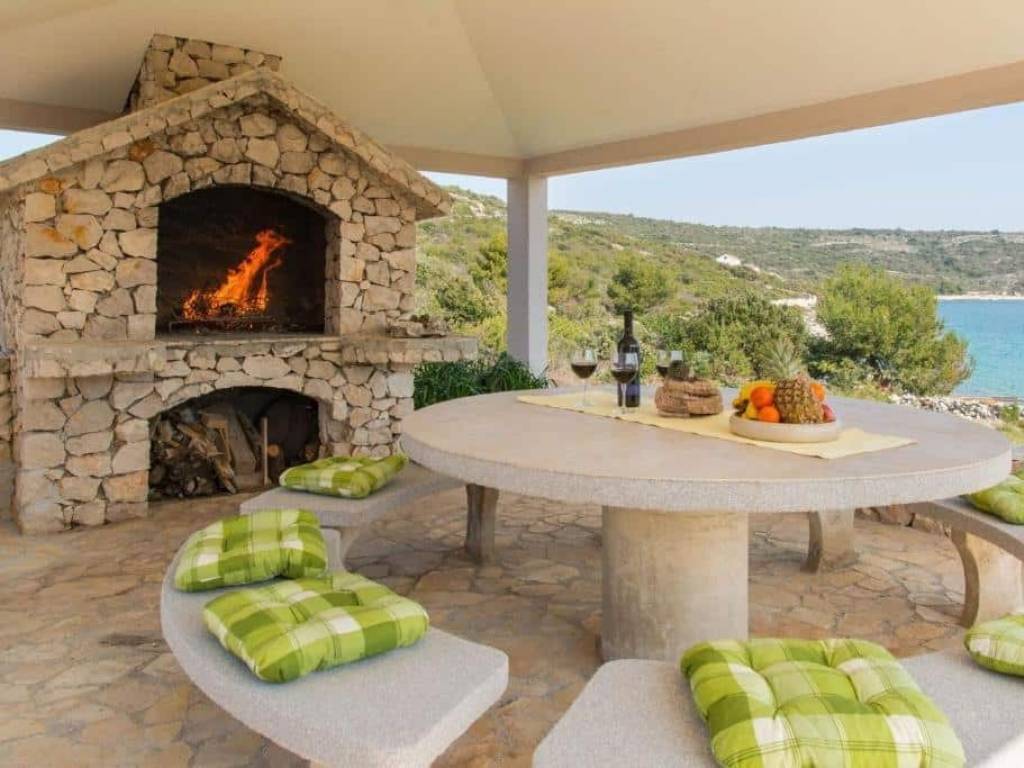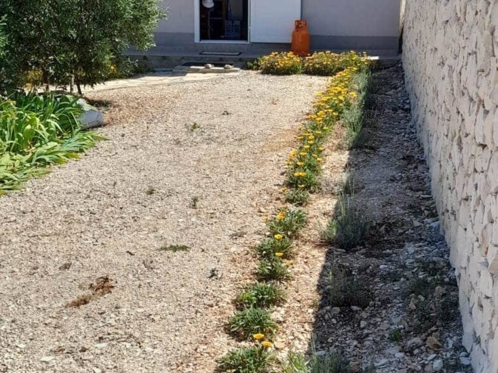 This rare and beautiful property is located right by the sea in a quiet bay not far from the village of Marina. On a spacious plot of 1360 m2 there are two residential buildings, the main and auxiliary.The main building is a beautifully decorated 50 m2 single-storey house with two bedrooms, a bathroom, a living room, a kitchen and a dining room. The house opens onto a beautiful covered terrace with a dining area and a stone-paved barbecue.The auxiliary building of 25 m2 is a small studio apartment with a kitchen, living room, bedroom and bathroom.On this spacious, regular-shaped plot there is also enough space to park several cars. The garden is beautifully landscaped and planted with typical Mediterranean plants. A stone-paved path on the plot leads directly to the coast and the sea.The property is being sold fully furnished and equipped.Since this part of the village still doesn't have electricity and water, this property has a large cistern that supplies it with water, and solar panels are installed on the roof to supply electricity. A septic tank is used for wastewater disposal.This property is ideal for those seeking maximum privacy, peace and a stay in untouched nature. Although it is located in a more isolated area, in nearby villages you can find amenities such as shops, cafes, restaurants, pharmacies..It is only 10 km from the village Marina, 23 km from Trogir city center, and 28 km from Split Airport.