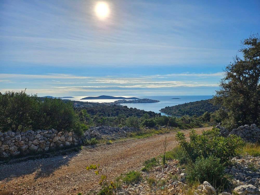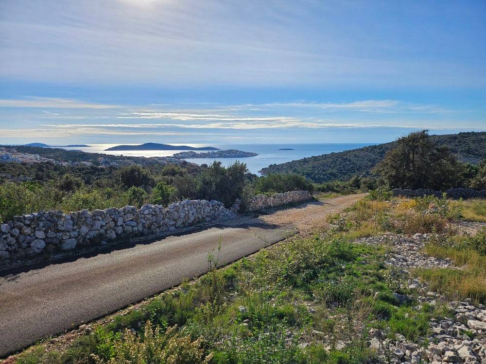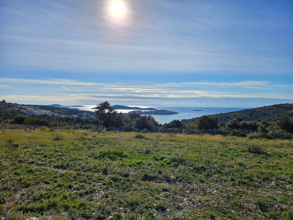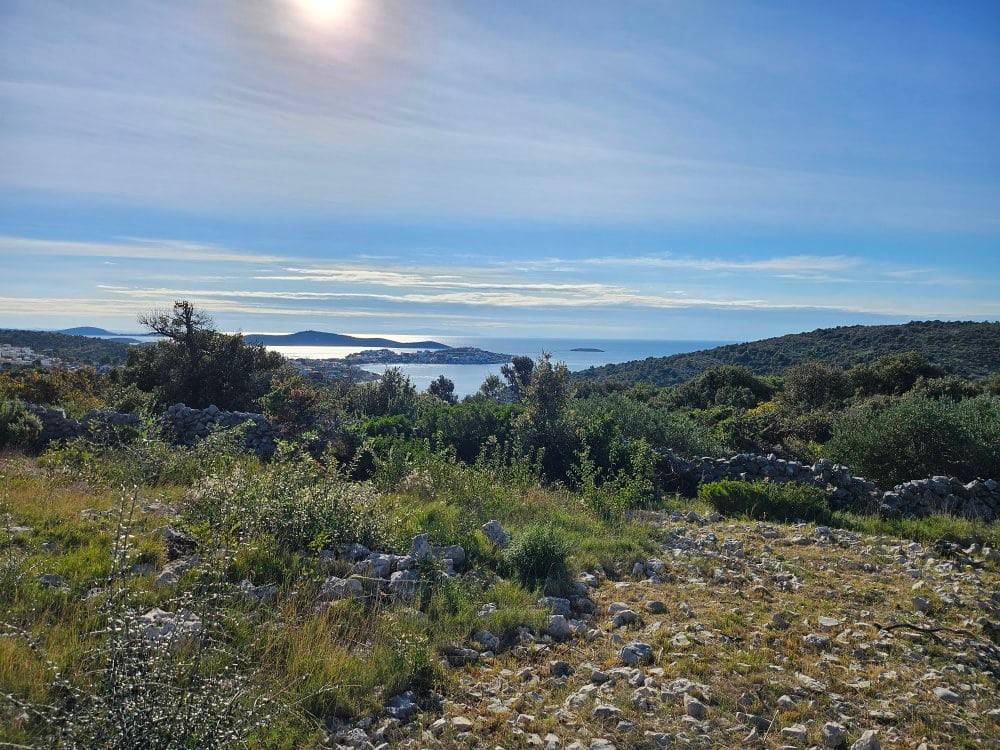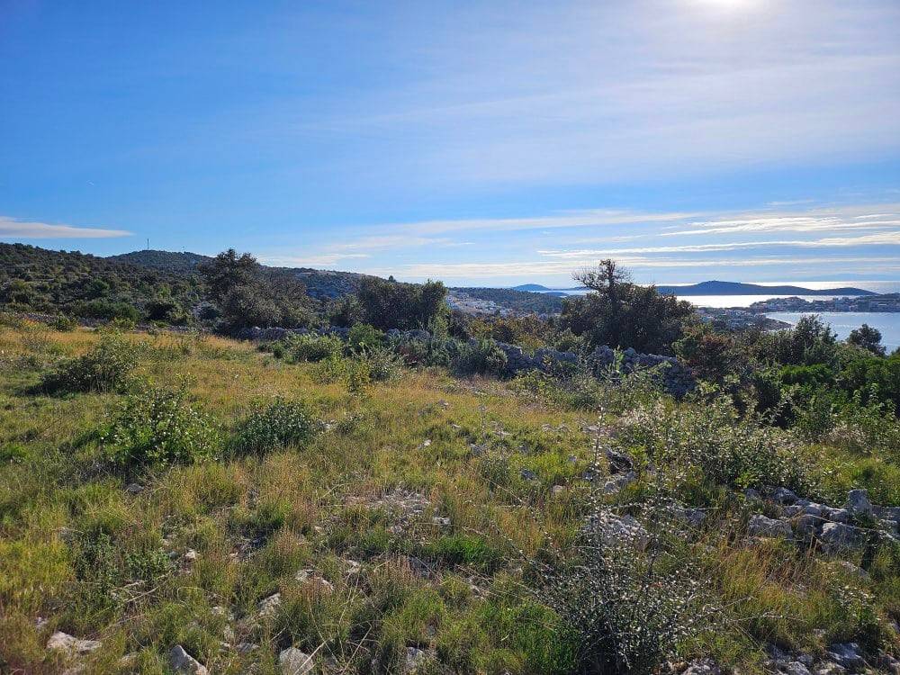 Građevinsko zemljište od 2 228 m2 + pristupni put-zasebna parcela od 228 m2. Zemljište jugozapadne orijentacije, nalazi se na uzvišenom predjelu, s blagim nagibom koji pruža prekrasan panoramski pogled na more i okolicu. Ono se nalazi u neizgrađenom (uređenom) dijelu građevinskog područja naselja stoga se na zemljištu može odmah graditi.Zanimljiva je činjenica da se ovo zemljište nalazi na rubu građevinske zone, to jest susjedna zemljišta sa zapadne, istočne i južne strane nisu građevinska. Iz tog razloga ovo zemljište nudi maksimalnu privatnost i nezaklonjivi predivan pogled na more.Ovo mirno područje je idealno za izgradnju vila za odmor ili vila kao investicijske prilika u turizmu. Zemljište je pravokutnog oblika, ima pristupni put, a komunalna infrastruktura (struja, voda) je u neposrednoj blizini. Udaljenost od najbliže plaže i mora iznosi svega 800 m, od grada Trogira je 24 km, od zračne luke Split 29 km, a od grada Splita 50 km.Mogućnost kupnje manjih površina zemljišta, kao primjer od 560 m2 za cijenu od 156 000€.