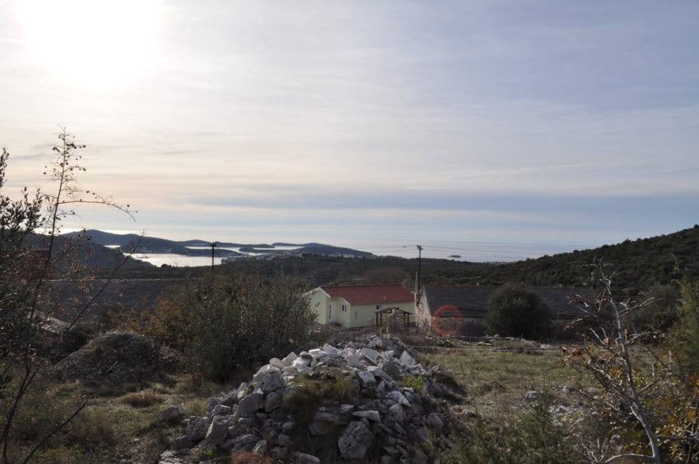 Prodaje se građevinsko zemljište površine 770 m2, smješteno u zaleđu Rogoznice. Južne orijentacije sa otvorenim panoramskim pogledom na more i arhipelag. Idejno rješenje sa dozvolom za gradnju kuće katnosti: Suteren, prizemlje i kat. Suteren: garaža, konoba, fitnes studio, sauna. Prizemlje: Dnevni boravak, kuhinja, ostava, dvije spavaće sobe, dvije kupaonice. Terasa 24 m2. Kat: Dvije spavaće sobe i dvije kupaonice, terase 24 m2. Zemljište se nalazi u manjem dalmatinskom mjestu nedaleko od Rogoznice. Vrlo mirno okruženje sa svega nekoliko stambenih objekata. Udaljenost od mora 3.5 km.