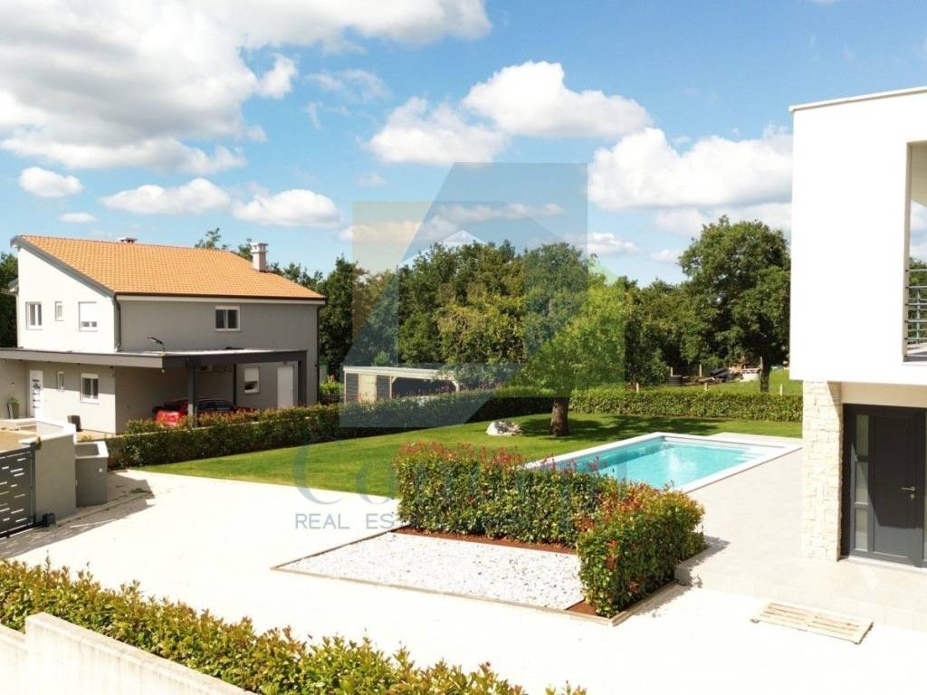 In vendita moderna casa in un tranquillo quartiere vicino a Poreč, a 5 km dal mare. Situata su un terreno di 942 m, la casa offre 171 m di spazio abitativo distribuito su pianterreno e primo piano.