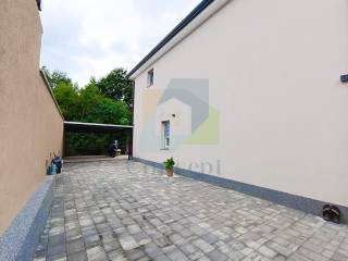 La casa si sviluppa su due piani ed è costruita su un terreno di 300 m, offrendo molto spazio per il relax e le attività all'aperto.