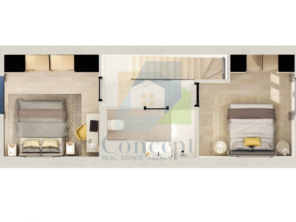 Questo appartamento su due piani è ideale per coloro che cercano uno spazio abitativo confortevole e funzionale, con ottime connessioni con il mare e la città.